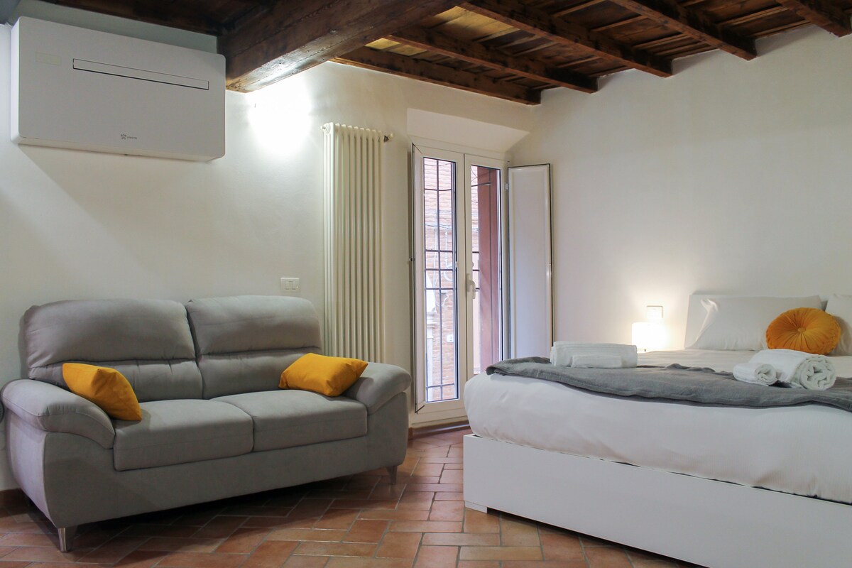 Լոֆթը գտնվում է Ֆերարայի սրտում ՝ պատմական կենտրոնի ամենահիասքանչ փողոցներից մեկում ։ Ջերմ, հյուրընկալ և լավ խնամված միջավայր ։ Տունն ունի անկախ մուտք և գտնվում է մեկ հարկում ։ Այն բաղկացած է խոհանոցից, լոգասենյակից, մեծ հյուրասենյակից և ննջասենյակից ։ Այն ձեր տրամադրության տակ ունի առանձին ներքին բակ ։ Գեղարվեստական ստուդիան վերածվեց յուրահատուկ տարածքի, որտեղ Էստորիան ներդաշնակորեն միախառնվում է ներկայի հետ ։ Հիանալի է Ֆերրարայի ռոմանտիկ մթնոլորտը զգալու համար