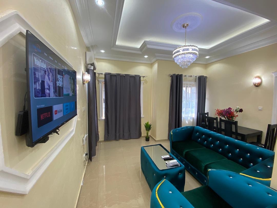 • Ցնցող բնակարան ՝ լիովին կահավորված ՝ երկու ննջասենյակում, հյուրասենյակում, խոհանոցիկի տարածքում, լոգասենյակում և ժամանակակից զուգարաններում ։ • Այն ունի մեծ 55 դյույմանոց QLED էկրան ՝ Netflix - ով և Wi - Fi կապով ։ • Ցերեկային պահակ, շուրջօրյա մաքրման ծառայություն, որն ապահովված է ազդանշանային համակարգով և էլեկտրական ցանկապատով, ինչպես նաև CCTV տեսախցիկներով ։ • Էլեկտրոնային գեներատոր ՝ էլեկտրաէներգիայի անջատման, ջրի խմբաքանակի և մասնավոր կայանատեղիի դեպքում ։