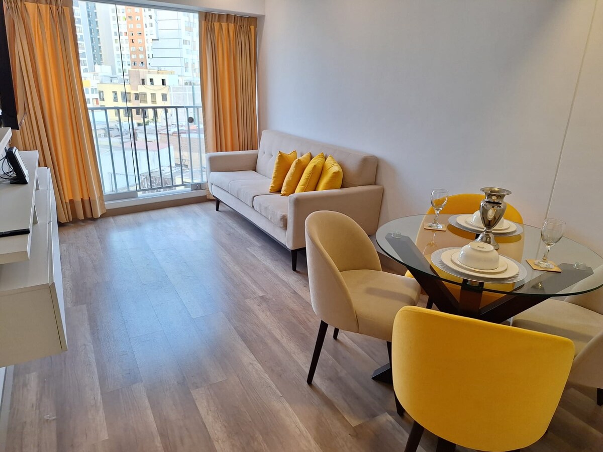 Departamento súper céntrico, a media cuadra de la comisaría y dos cuadras del mercado de Magdalena. Cuenta con agua caliente, internet, cable, Smart Tv de 42" UHD en sala y dormitorio, cocina con horno, microondas, refrigeradora, tostadora, licuadora y todos los servicios para una estancia confortable. No cuenta con lavadora. El edificio cuenta con recepcionista 24 horas.