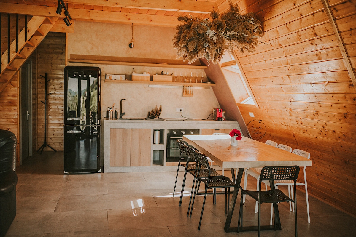Breathe the mountain air and let the scent of fir surround you in our cozy A-frame cabin in the Apuseni Mountains. Enjoy stunning views, clear springs, and peaceful trails. Relax by the fireplace, unwind on the terrace, and create unforgettable moments with loved ones. Adventure, nature, and quality time await—your perfect mountain escape. 🌲✨