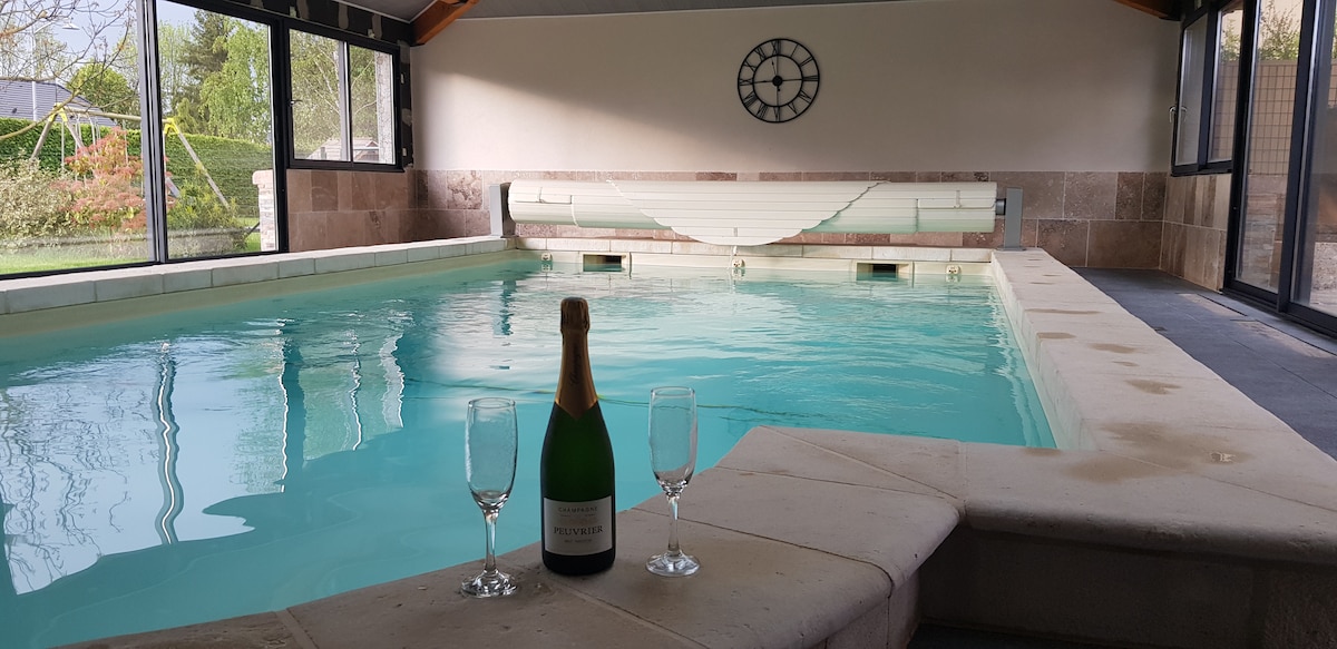 Ջեռուցվող փակ լողավազանով սեփականություն ՝ Շամպայնի, Դիսնեյլենդի, Պրովինսի, Փարիզի մոտակայքում ։ Տեղավորվեք այս հմայիչ տանը, որը բաղկացած է երկու լիովին վերանորոգված տներից, որոնք ունեն գեղեցիկ նոր և ջեռուցվող փակ լողավազան ամբողջ տարվա ընթացքում ՝ հին ամբարում ։ Այն իդեալականորեն գտնվում է գյուղական վայրում ՝ Շամպայնի դարպասների մոտ (առաջին նկուղներից 20 րոպե հեռավորության վրա և Էպերնեյից և նրա պողոտայից 45 րոպե հեռավորության վրա), Պրովինսից 30 րոպե հեռավորության վրա, Դիսնեյլենդ Փարիզից 1 ժամ հեռավորության վրա, Փարիզից 1 ժամ 20 րոպե հեռավորության վրա: