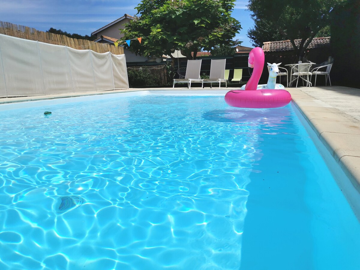 3* գնահատականով T2, հանգիստ տարածք։ Կատարյալ է զույգերի կամ 2 համագործակցի համար՝ առանձին մահճակալներով (Queen size + բազմոց-մահճակալ՝ ներքնակի վրայի ծածկոցով)։ Առավելագույնը 2 հյուր (20 եվրո լրացուցիչ վճար 2-րդ մահճակալի համար)։ Սպիտակեղենը և սրբիչները ներառված են Տեռաս, այգի, կայանատեղի և լողավազան (հունիս)։ Օպտիկամանրաթելային Wi-Fi, գրասեղան, ցնցուղարան։ Ընդհանուր խոհանոցիկ (մեր 3 կատուները մտնում-ելնում են), բայց կողպված դուռը երաշխավորում է գիշերելու տարածքի լիակատար առանձնություն։ Իդեալական է պրոֆեսիոնալների և հանգստի համար. 5 րոպե մինչև մայրուղիներ, 35 րոպե մինչև Լիոն/Եվրոէքսպո։ Հեծանվորդները կարող են այցելել։ Անհամբեր սպասում ենք ձեզ հյուրընկալելուն։