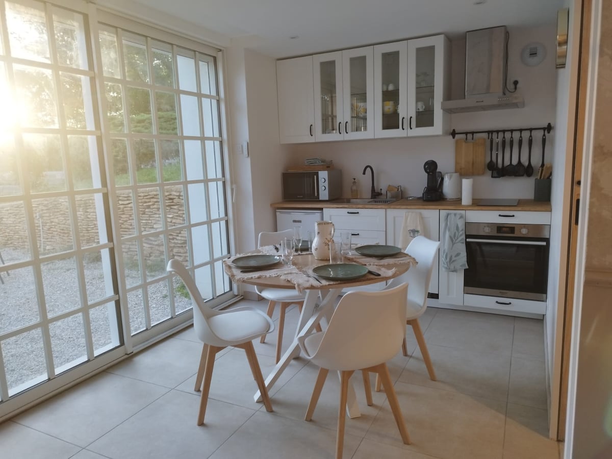 Անձնական սպա և XXL ցնցուղ — ձեր Cocon aux Portes de Lyon-ը Ռոմանտիկությո ՞ ւն ։ Բարի գալուստ՝ վայելելու «Apricotine»-ը։ 🌿 Առողջ ապրելակերպ. վայելեք պրեմիում դասի մերսում, ջակուզի և կրկնակի զգայական ցնցուղ՝ լիարժեք հանգստի համար։ Գաղտնի 🏡 պարտեզ՝ առանձին տեռաս՝ առանց դիմացի տան, մանղալով և հյուրասենյակով։ 📍 Լիոնից 20 րոպե հեռավորության վրա՝ կախարդական ծննդյան տոնի կամ հանգստի համար կատարյալ ապաստարան, որտեղ միավորվում են խաղաղությունն ու մոտիկությունը։
