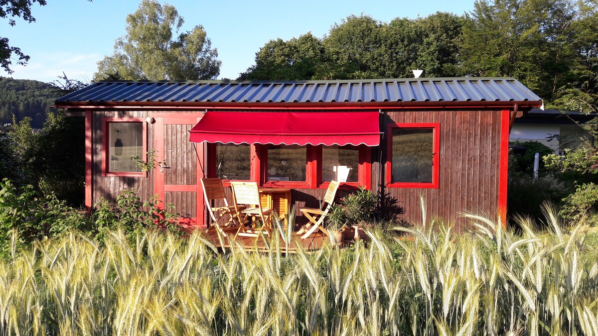 Lerne in romantischer Natur das Leben im Tinyhouse kennen. Das nachhaltige Gebäude wurde komplett in Eigenleistung entworfen und gebaut. Hoher Anspruch an Design und Materialien sowie ein artemberaubender Blick aus dem Panoramawohnbereich lassen keine Wünsche offen. Der verglaste Wohnbereich mit Blick in die Natur ist nur eines der Highlights. Ein privater Whirlpool steht auf der Terrasse. Die Küche ist voll ausgestattet. Der Whirlpool ist ganzjährig nutzbar.