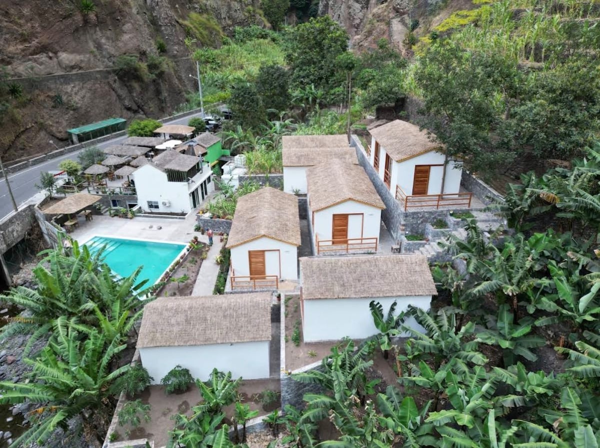 Պողոսի հովտում գտնվող այս նորաոճ բնակարանը նայում է կանաչ օազիս ՝ բանանի բույսերով, մանգո - և հացաբուլկեղենի ծառերով: Այն գտնվում է Vila das Pombas - ից ոտքով հեռավորության վրա, ինչը նշանակում է, որ դուք հեշտությամբ կարող եք օգտվել ռեստորաններից և խանութներից: Մեր տունը ՝ Քասադ'Վիզինը , որը նշանակում է «հարևանի տուն», որը գտնվում է Կրեոլեում, գտնվում է լեռներին և օվկիանոսին նայող փոքրիկ գյուղում ։ Մեր բնակարանը յուրահատուկ է դարձնում այն, որ այն եվրոպական հարմարավետության և Քեյփ Վերդյան ոճի խառնուրդ է ։ Վեգաններ և բուսակերներ ։