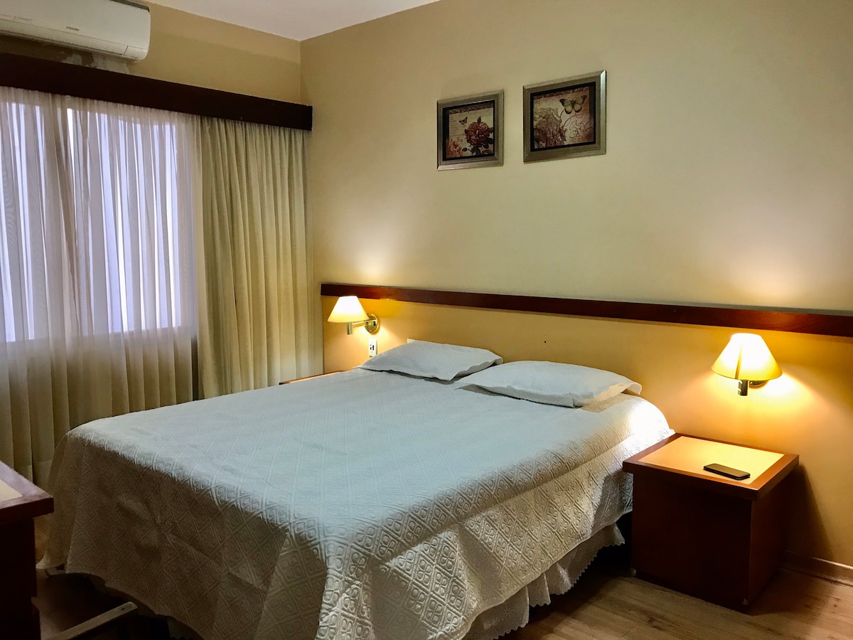 Flat no centro! Fast WIFI, Ar, garagem e limpeza!