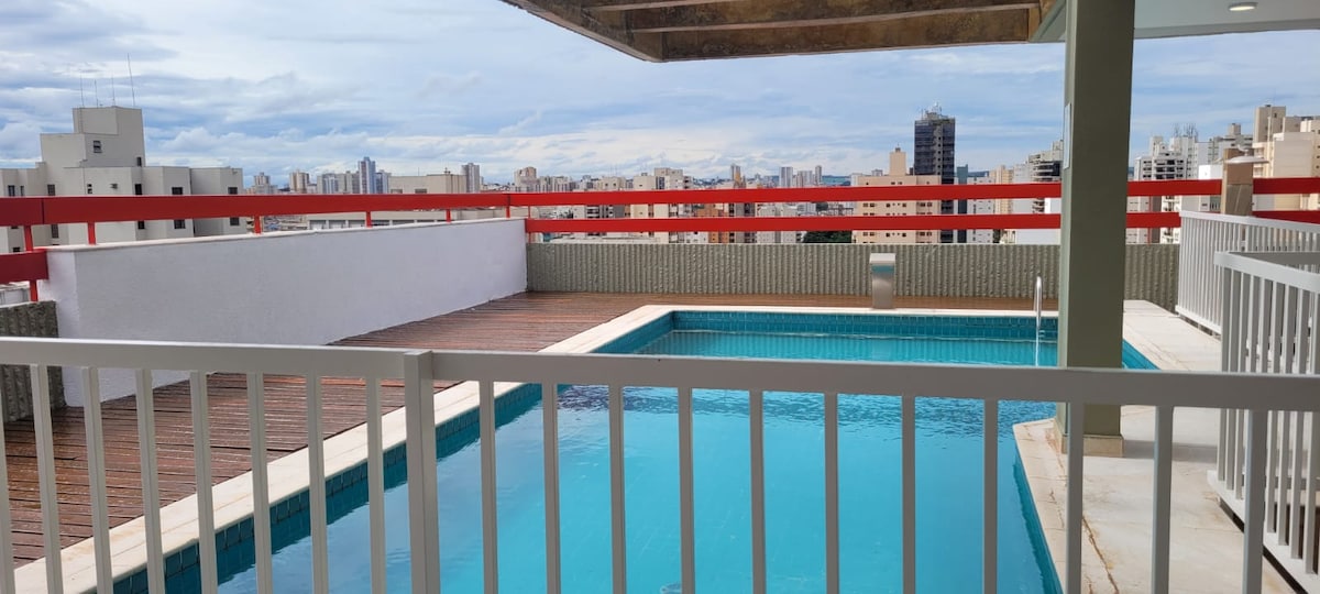 Aproveite o acesso fácil a tudo o que precisar nesta acomodação bem-localizada. Flat localizado na área central de Ribeirão Preto, reformado novo, próximo ao Pinguim, Shopping Santa Úrsula, Rodoviária, Calçadão, supermercados e Lojas. Piscina no terraço, sala fitness com acesso a internet e sala de convenções, sauna, área de lazer com churrasqueira, geladeira na área da piscina e som ambiente. O prédio possui dois elevadores. Você tem direito a uma vaga na garagem coberta.