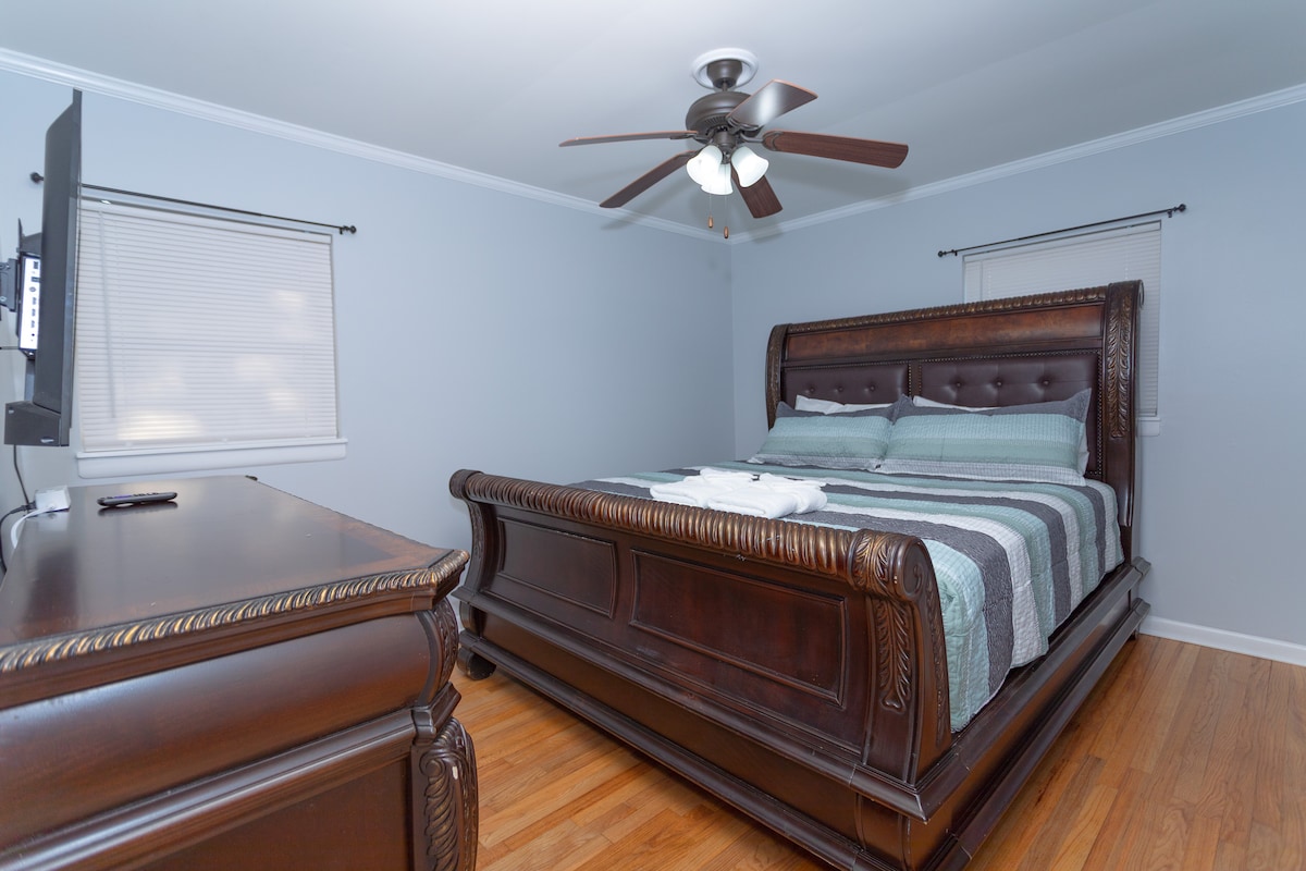 Enjoy the entire ground floor of this home! Access to the Greeneway Trail! Private entrance with onsite parking. The main living area consists of a fully stocked kitchen, washer & dryer, pool table, dining area & office. The living area has a large flat-screen TV, Roku, a comfy couch & elec. keyboard piano. The bedroom boasts a queen size bed, wardrobe, & TV. Also, a sauna & a massage chair! All/Every Guests must provide Gov. Photo ID to Book & be 21 or older. Maximum of Two Guests. NO PETS
