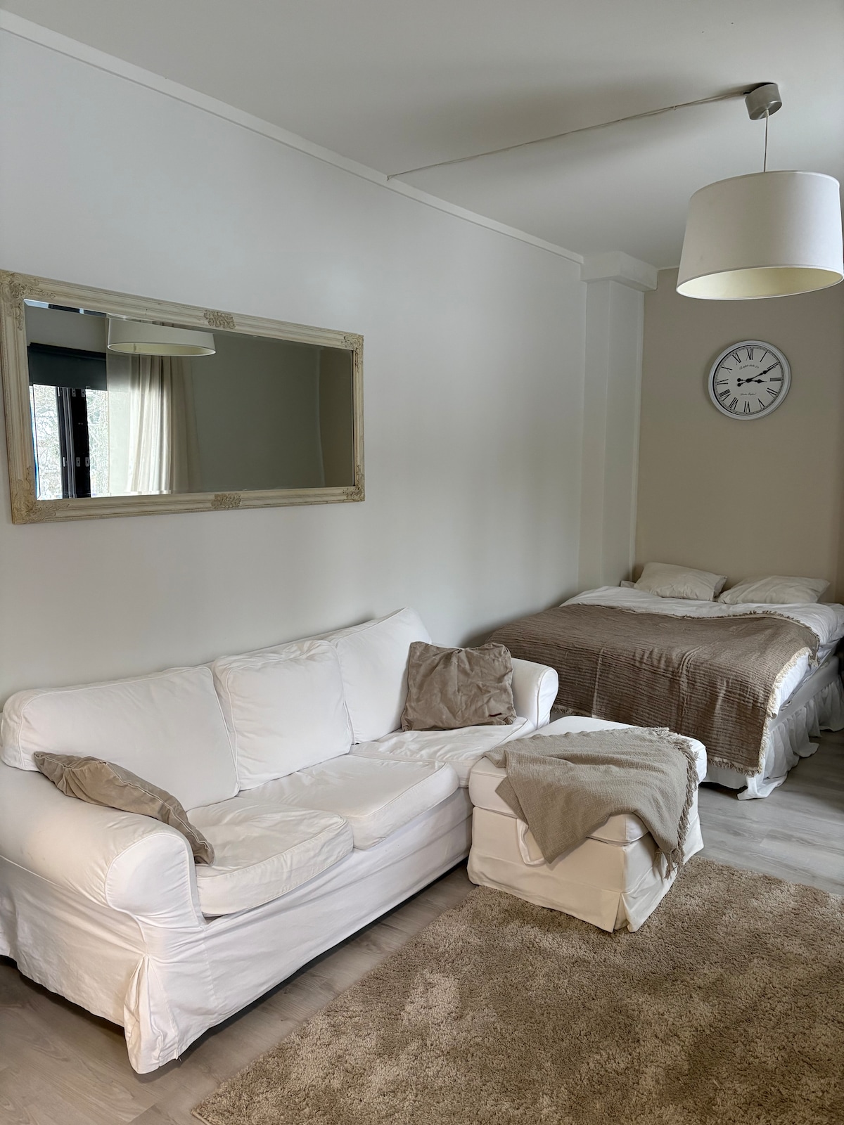 Ընդարձակ 100 քմ լուսավոր բնակարան ՝ առանձին ավտոկայանատեղիով: Բոլոր ծառայությունները քայլելու հեռավորության վրա. խանութ, փոստային բաժանմունք, դեղատուն և երկաթուղային կայարան (50 մ): Հեշտությամբ Հելսինկիի և Տամպերեի համար: Կարող եք կախվել բակում և խորոված անել ։ Բնության սիրահարների, վազքի հնարավորությունների համար կարող եք նաև լողալ ամռանը ։ Կա նաև սիրված ֆրիսբի գոլֆի դաշտ: Ներքևում գտնվող ռեստորանը կարաոկե է ուրբաթ և շաբաթ օրերին, ինչի հետևանքով աղմուկ է լսվում: Տարածքը կարող է վարձակալվել 10 հոգու համար ՝ հարմարավետ բացօթյա շոգեբաղնիքում ՝ բուխարիով ։