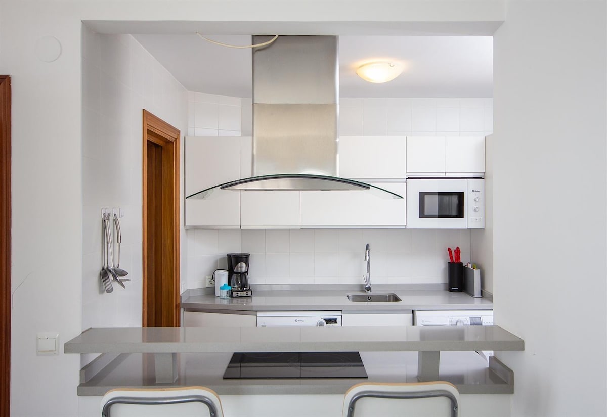 Բարեհամբույր բնակարան ՝ Wi - FI - ով և երկու ննջասենյակով հենց լողափին ։ Շենքն ունի վերելակ: Ննջասենյակ 1 ՝ երկտեղանի մահճակալ ։ Ննջասենյակ 2: երկու առանձին մահճակալ: Բնակարանն ունի կահավորված խոհանոց, սանհանգույց, սրահ և հրաշալի տեռաս ՝ ծովի տեսարանով: Սրահում կա բազմոց, բազկաթոռ, հեռուստացույց, երկու սեղան և աթոռ: Բնակարանը գտնվում է հիանալի տարածքում, որտեղ կան բազմաթիվ լավ ռեստորաններ, սուպերմարկետներ, փաբեր և մոտակայքում գտնվող այլ տեսարժան վայրեր: