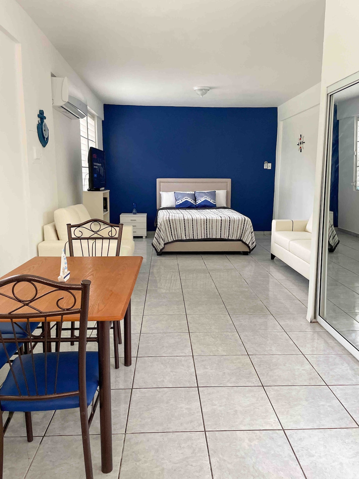 Բարի գալուստ նոր և վերանորոգված հանգիստ ։ Սա բնակարանային ստուդիա է, որը հիանալի վայր է Ռինկոնի, Լալաս Բիչի, Հացաբուլկեղենի, Ռեստորանների, բարերի և Էկոնո սուպերմարկետի մոտակայքում ՝ ընդամենը 5 րոպե հեռավորության վրա: Այն ներառում է WI - FI, հեռուստացույց, սալօջախ, միկրոալիքային վառարան, ցնցուղի էլեկտրական ջեռուցիչ, սպասք և, ըստ էության, այն ամենը, ինչ անհրաժեշտ է հաճելի հանգիստ անցկացնելու համար ։ Հարկ է նշել, որ բնակարանի ստուդիան շատ ընդարձակ է ՝ Queen Size մահճակալով ։
