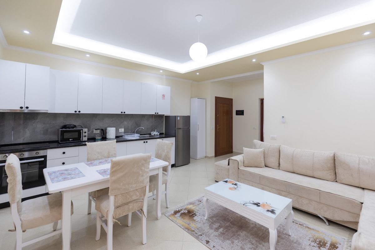 Վայելեք ժամանակակից հարմարավետությունը հմայիչ միջավայրում: Հանգստացեք հյուրասենյակում, պատրաստեք լավ կահավորված խոհանոցում և հանգիստ քնեք թագուհու չափի մահճակալում ։ Մեր Airbnb - ն, որը գտնվում է գլխավոր Դուրրես Բիչի տարածքում, առաջարկում է անզուգական հարմարավետություն ։ Ընդամենը 2 րոպեանոց հանգիստ զբոսանքը վայրէջք է կատարում ավազոտ ափերին, մինչդեռ հիմնական մթերքները և հարմար սուպերմարկետը ոտքով ընդամենը 1 րոպե են: Մեքենա չկա ՞։ Խնդիր չկա ։ Ավտոբուսի կանգառը, որը գտնվում է ընդամենը 3 րոպե հեռավորության վրա, հարմարավետորեն կապում է ձեզ աշխույժ քաղաքի կենտրոնի հետ ։