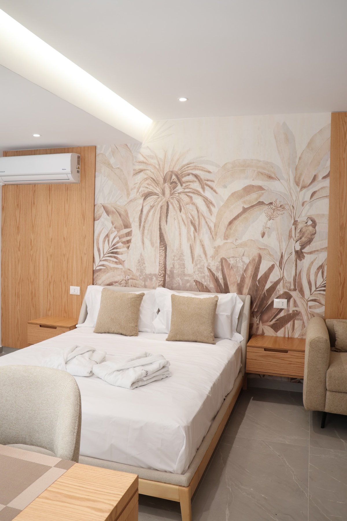 Discover the perfect blend of style and convenience in our one-of-a-kind Airbnb apartment, where creative, edgy modern design meets unmatched location.Situated on the first floor, just a stone's throw from the serene beach—mere 20 meters away—our apartment promises an unparalleled seaside retreat. In an exciting collaboration with our sister company Cosmo Beach Hotel, we are delighted to offer guests complimentary sunbeds, ensuring your days by the shore are as comfortable as they are memorable.