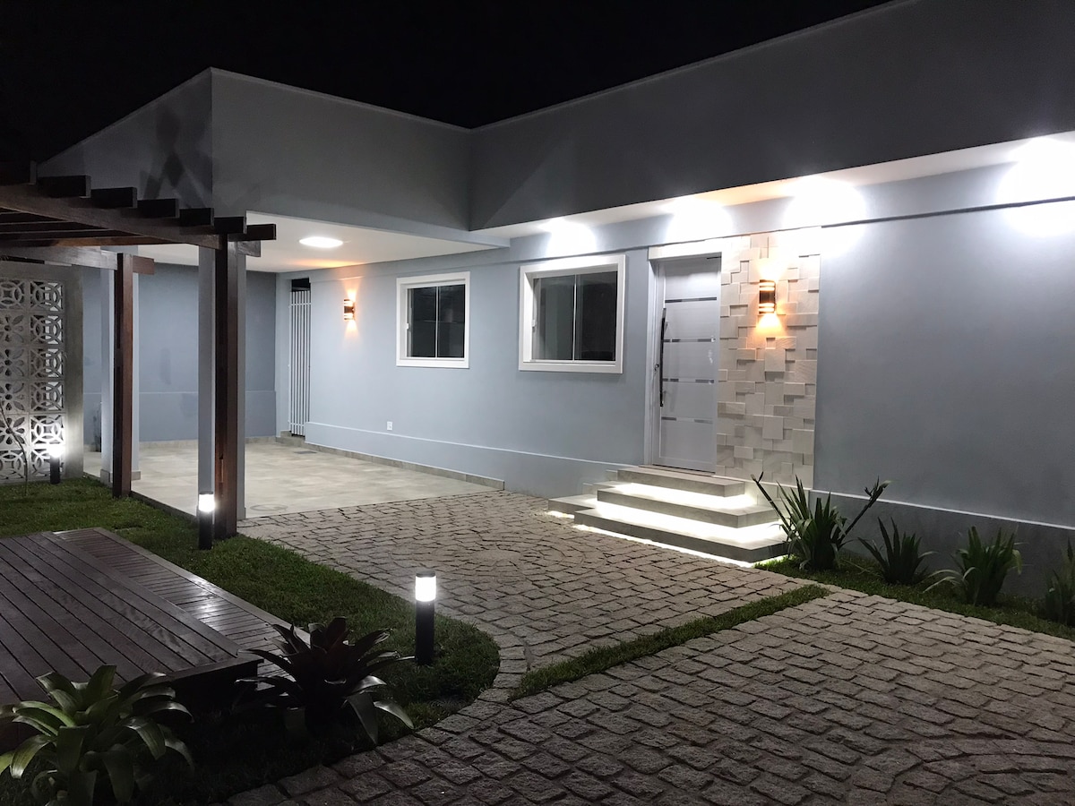 Հանգստացեք ձեր ընտանիքի հետ այս հանգիստ տանը: Ձեզ զգացեք ինչպես տանը հիանալի վայրում ՝ Shopping Jóquei Plaza - ի, Colégio Militar - ի, Բուսաբանական այգու մոտակայքում... Տունն ունի հանգստանալու գեղեցիկ այգի: Երկու ննջասենյակ (երկտեղանի և մեկտեղանի) և թախտ հյուրասենյակում ՝ 4 հոգու համար ։ Հարմար է այն ճանապարհորդների համար, որոնք փնտրում են հարմարավետություն, անվտանգություն և հանգստություն։ Կարևոր է. թույլատրվում է միայն 01 (մեկ) փոքր ցեղատեսակի տնային կենդանի, օրինակ՝ շի-ցու, պոմերանյան լուլու և յորքշիր։