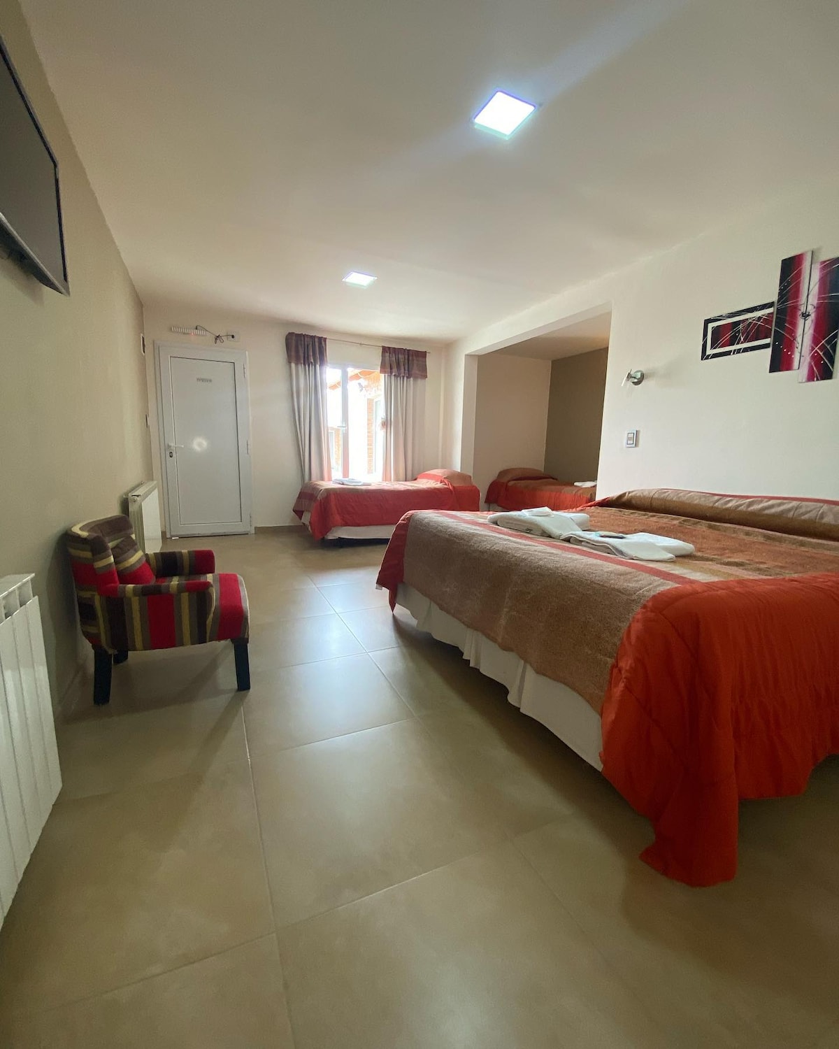 Quédate en este alojamiento céntrico para que tu familia, tú y amigos, o simplemente tú, estén o estés cerca de todo. Estamos a 200 metros de la plaza central, del supermercado, de una farmacia, a 300 metros del banco y correo postal, a 400 metros del Río Chico (con su costanera que invita a caminar, descansar, recrearse), y del cerro. ofrecemos un garaje con cámara de seguridad. contamos con wifi, TV, microondas, cocina con horno, alacena con vajilla completa para 4 personas, desayuno seco.