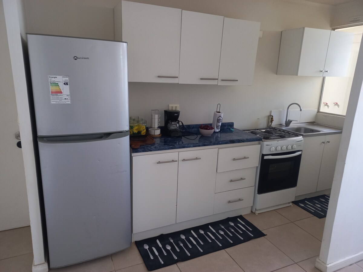 Հանգիստ, հարմարավետ տարածք ՝ հանգստանալու, աշխատելու և պատրաստելու համար անհրաժեշտ ամեն ինչով, ինչ անհրաժեշտ է հանգստանալու, աշխատելու և պատրաստելու համար ։ Քայլեր Teletón - ից և Universidad de Talca - ից, Պունտո Կոպեկից կես թաղամաս, որը մոտ է Պունտո Կոպեկին, մոտ է պահեստներին, մեքենայով, 5 րոպե սուպերմարկետներից և 15 րոպե կենտրոնից: