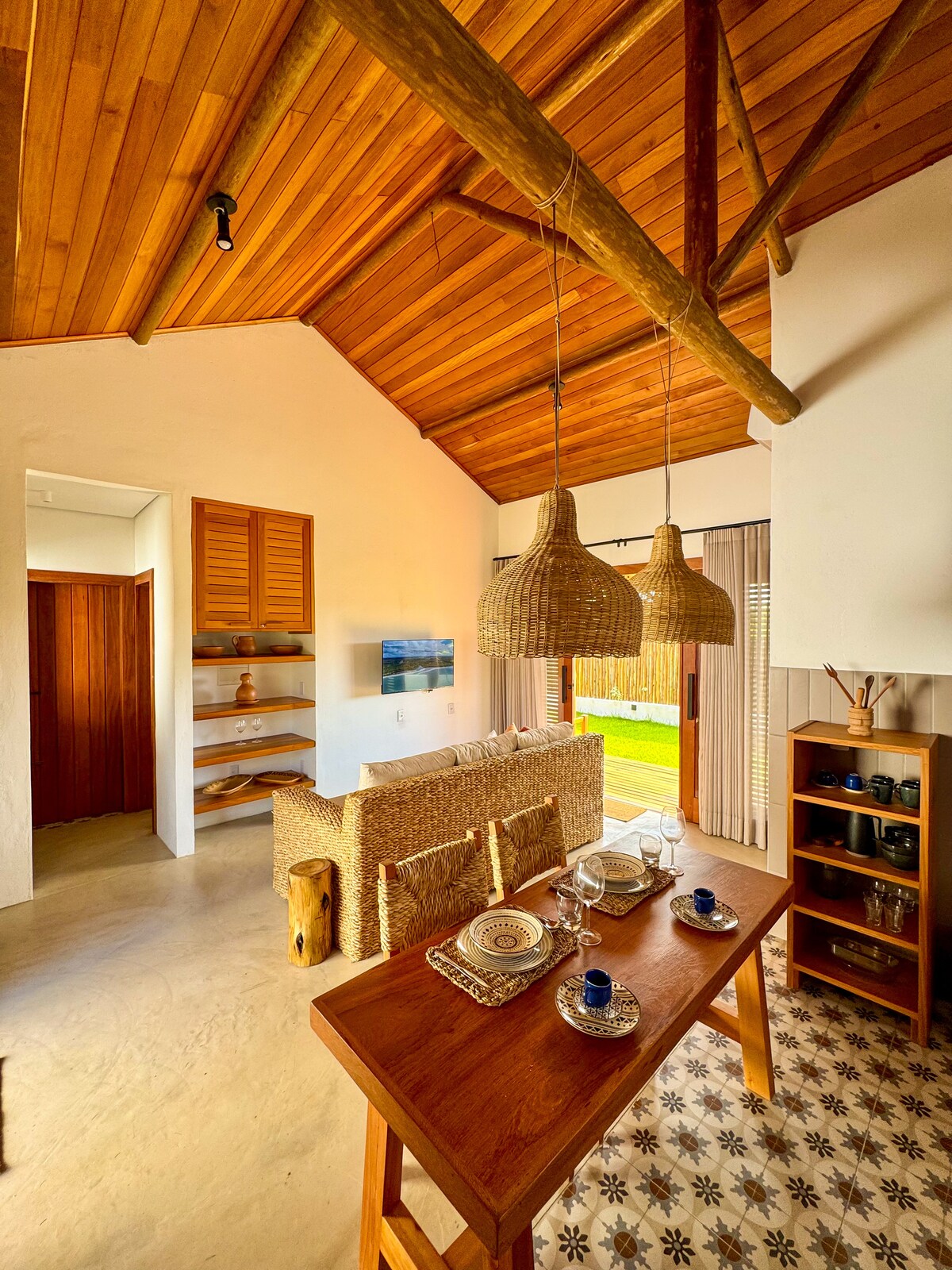 Նորակառույց բունգալոներ մինչև 4 հոգու համար ՝ երկտեղանի մահճակալով, երկտեղանոց մահճակալով, անկողնային պարագաներով և լոգարանով, ամբողջական խոհանոցով և սպասքով, օդորակիչով, առաստաղի օդափոխիչով, Wi - Fi - ով և 32"SmartTV - ով: Ձկնորսական տարածքներից ոգեշնչված ՝ մեր բունգալոներն ունեն հմայքն ու պարզությունը ՝ հարմարավետության և յուրահատուկ փորձառության հետ միասին, որտեղ դուք կապրեք անմոռանալի պահեր: Լողափից 300 մ հեռավորության վրա գտնվող Կորումբաուի ժայռի վրա մենք նաև մոտ ենք կենտրոնին ՝ ռեստորաններով և շուկաներով: