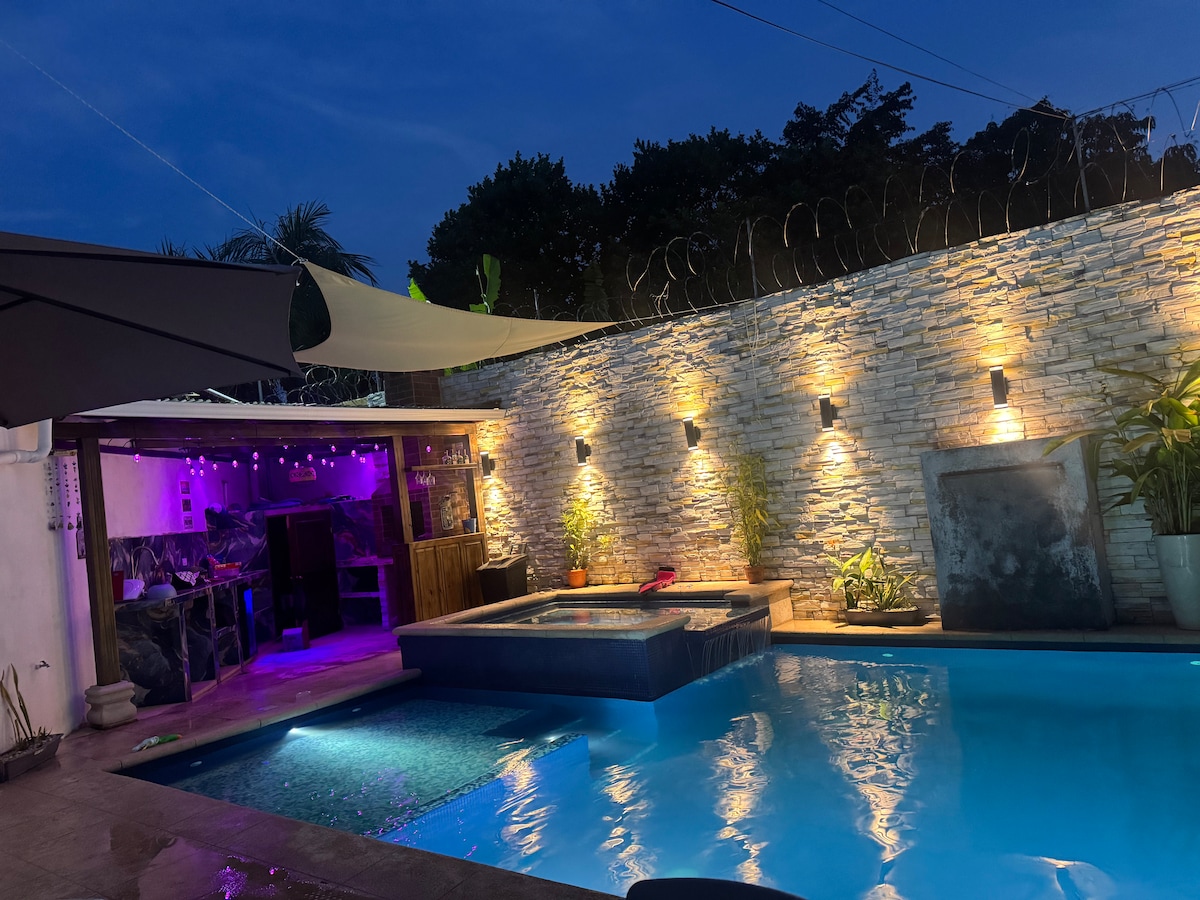 Disfruta de una estancia relajante en esta casa moderna, limpia, tranquila y segura, ubicada en Puerto Barrios. Sabemos que el calor y los cortes eléctricos son comunes en la zona, por eso contamos con generador de energía de emergencia incluido, sin costos extra-- Ademas una piscina + jacuzzi ¡único en Airbnb! la casa se encuentra en un pequeño complejo habitacional, la piscina esta por aparte no esta dentro de la casa. entrada privada independiente.