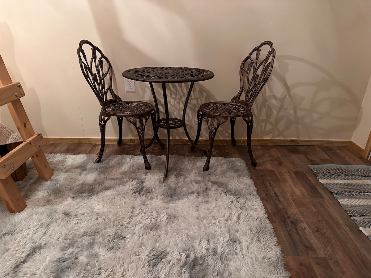 Մեծ ,մաքուր, լուսավոր տարածք աշխատանքի կամ հանգստի համար: Գրասեղան և աթոռ , Wi - Fi, կաբելային հեռուստատեսություն : 150 -179 սմ մահճակալ , մահճակալի կողքի սեղաններ և լամպեր, հագուստի դարակ , արդուկ և արդուկի սեղան ։ Մեկօրյա մահճակալ ՝ հանգստանալու կամ մեկ այլ անձի տեղավորելու համար: Խոհանոցիկ , նախապատրաստական տարածք , ամբողջական սառնարան , գազօջախ : Միկրոալիքային վառարան , Keurig և խոհանոցային պարագաներ : Առանձին լոգասենյակ ՝ ցնցուղով զբոսանքով ։ Առանձին բացօթյա տարածք, փակ բակ: Բացօթյա գազի գրիլ : Շաբաթական և ամսական սակագների համար գործում են զեղչեր: Շուն սիրալիր ,ոչ կատուներ:
