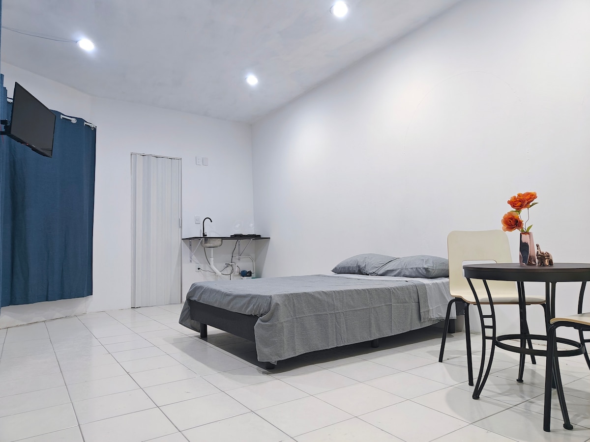 Վայելեք շքեղ հանգիստ կենտրոնական մասում գտնվող այս բնակարանում, որը գտնվում է Country-ի միջոցով Boulevard Bicentenario պողոտայից մեկ թաղամաս հեռավորության վրա և Feria de Villahermosa զբոսայգուց 5 րոպե հեռու։ Այն բաղկացած է 2 հոգու համար նախատեսված սենյակից, որտեղ ամեն ինչ կա՝ խոհանոց, սառնարան, գրասեղան, հեռուստացույց, ինտերնետ, Wi-Fi, օդորակիչ, ճաշասենյակ, առանձին լոգասենյակ, արդուկ, վարսահարդարիչ և այլն։ Այն նախատեսված է որպես հանգիստ վայր, որտեղ կարելի է անցկացնել անմոռանալի օր և հանգիստ, հանգիստ գիշեր։ Տարածքը կենտրոնացված է և անվտանգ ։