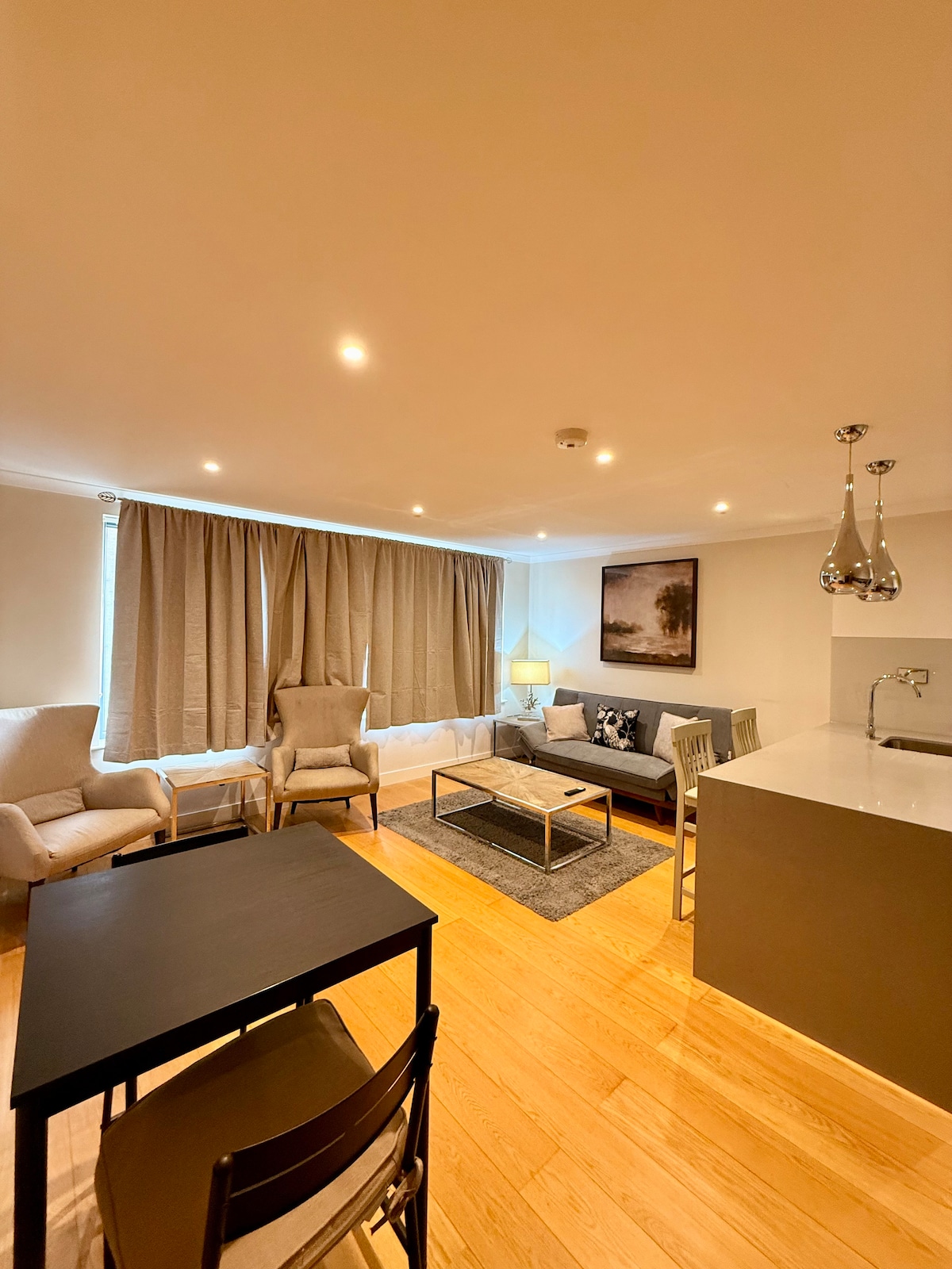 Դաշտերին նայող այս շքեղ վերին հարկի տարածքը ձեզ հրավիրում է լիցքաթափվելու ։ Գերժամանակակից, խաղաղ և գեղեցիկ հարդարված ։ Հագեցած է ձեզ անհրաժեշտ ամեն ինչով և ավելին ։ Թարմ լոբուց մինչև բաժակ սուրճ եփեք Ninja Luxe սուրճի ապարատի հետ ։ Սմարթ հեռուստացույցներով հոսքային եղանակով ցուցադրեք ձեր սիրած շոուները, խաղացեք սեղանի խաղեր որպես խումբ կամ աշխատեք այնտեղ, որտեղ տեսարանը ոգեշնչում է ձեզ: Ինչ էլ որ լինի ձեր այցի նպատակը, աշխատեք կամ հանգստացեք, սա հենց այն վայրն է, որտեղ պետք է լինեք ։ Լոնդոնը մոտ է, բայց կարծես հեռու աշխարհ լինի ։ Միշտ էլ կայանելու տեղ կա ։