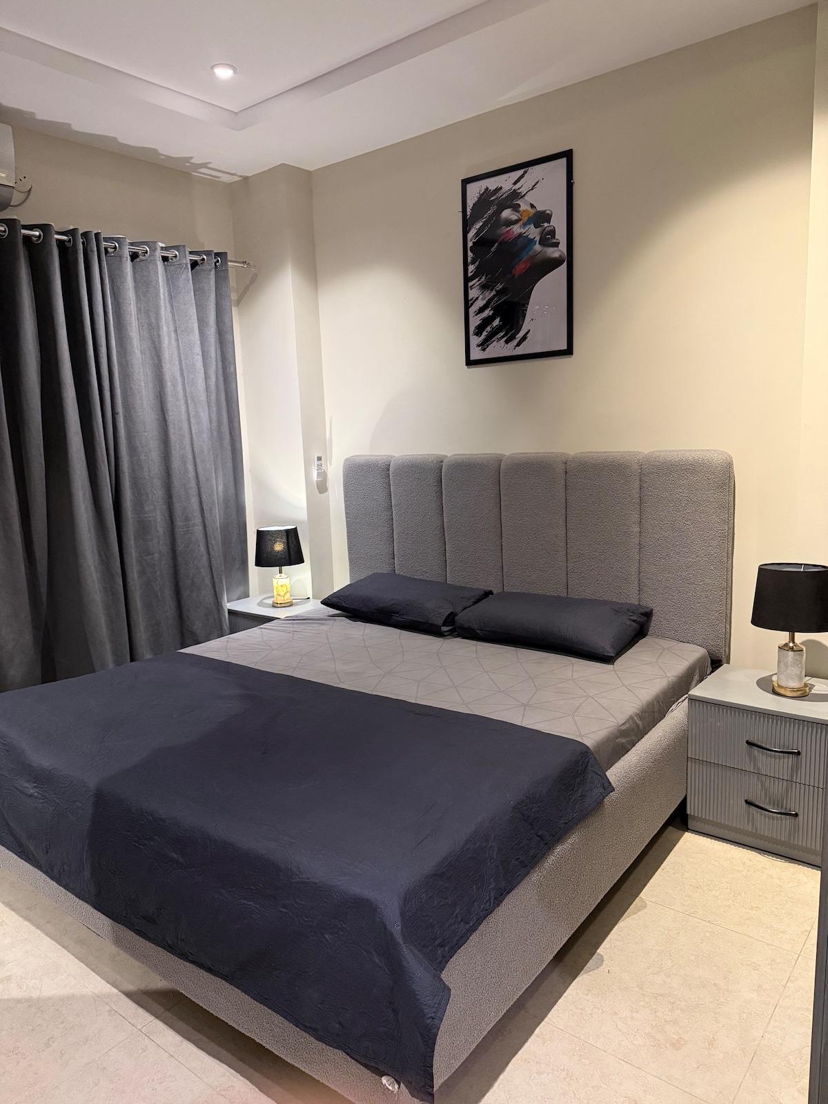 Luxury 2BHK Zeta Mall - ում | Դիզայներ 2BR ՝ Sunset & Margalla - ի տեսարաններով Մտեք այս ընդարձակ 2 ննջասենյակով բնակարանը ՝ երկու մեծ մահճակալով, առանձին պատշգամբով ՝ բացօթյա նստատեղերով, 55" Smart TV - ով և 30 Մբիթ/վ Wi - Fi - ով ։ Վայելեք լիովին կահավորված խոհանոցը, տաք ջուրը և ժամանակակից դեկորը ՝ անխափան մնալու համար ։ Գտնվում է Zeta Mall Food Court - ի վերևում և Giga Mall - ից մի քանի րոպե մինչև DHA և Expressway, կատարյալ է ընտանիքների, բիզնես ուղևորների և հանգստյան օրերի հանգստի համար ։ CNIC - ը պահանջում է 18 +։ Առանց ծխելու կամ երեկույթների ։