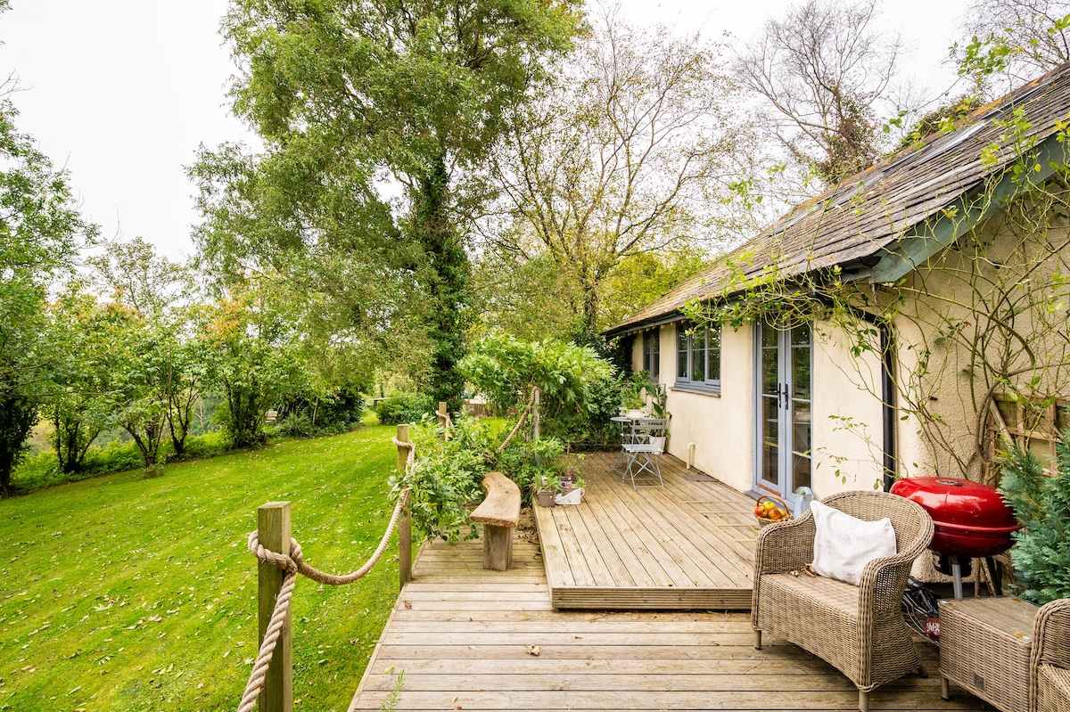 River Tamar. բացօթյա նստատեղով տների վարձակալություն հանգստի համար
