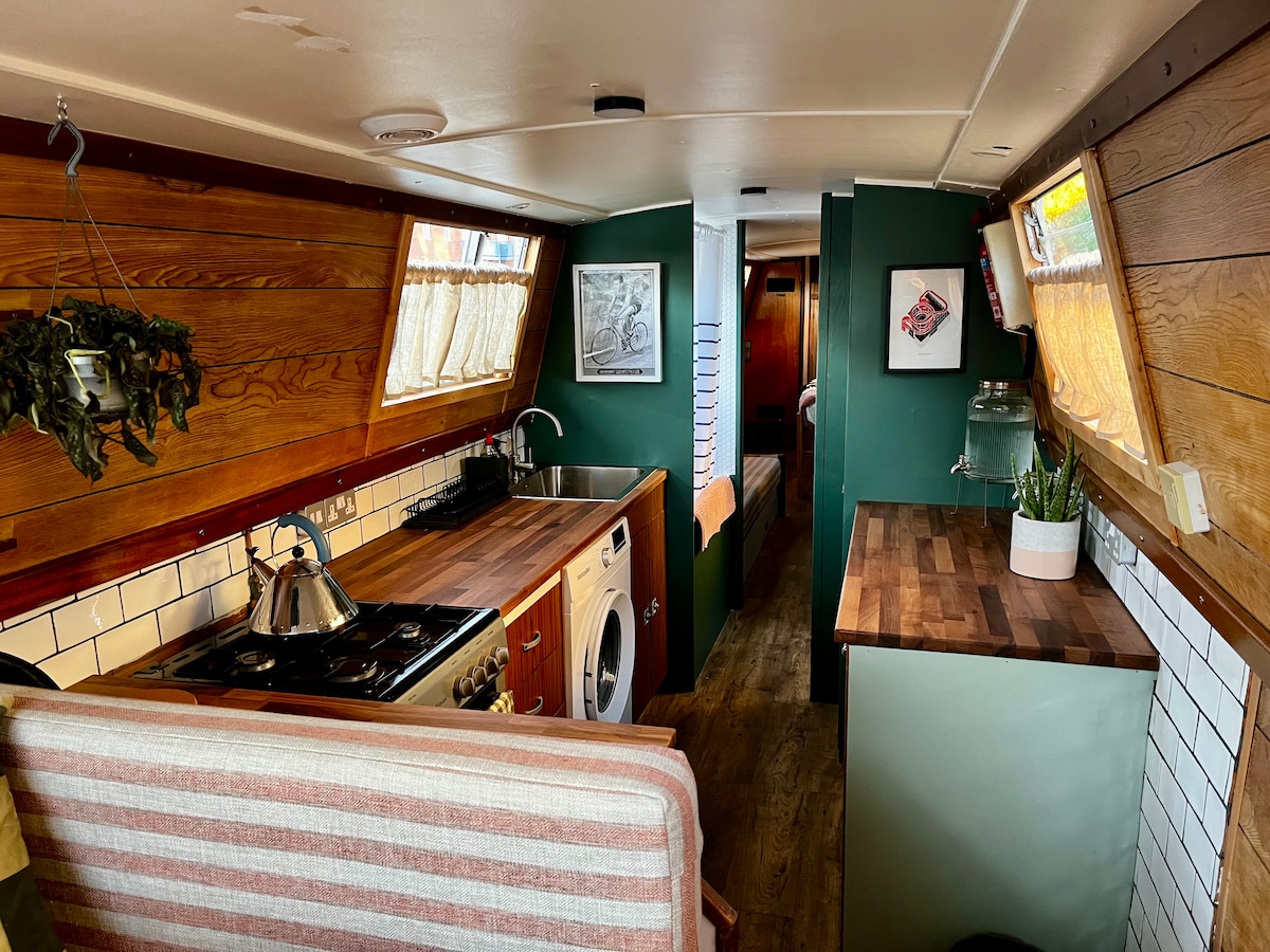 February sale!! Text OMG for deets!Don’t be shy of the cold! The fireplace gets the boat toasty warm and the hot water for the shower is instant! We have robes slippers and hot water bottles for your comfort! Boat is currently in a prime location walking distance into town with loads of restaurants and shops on your doorstep and just a couple minutes from the tube. Start 2026 with a new adventure- bring your pooch to the most dog friendly spot and for alternative culture hit me up for tips!