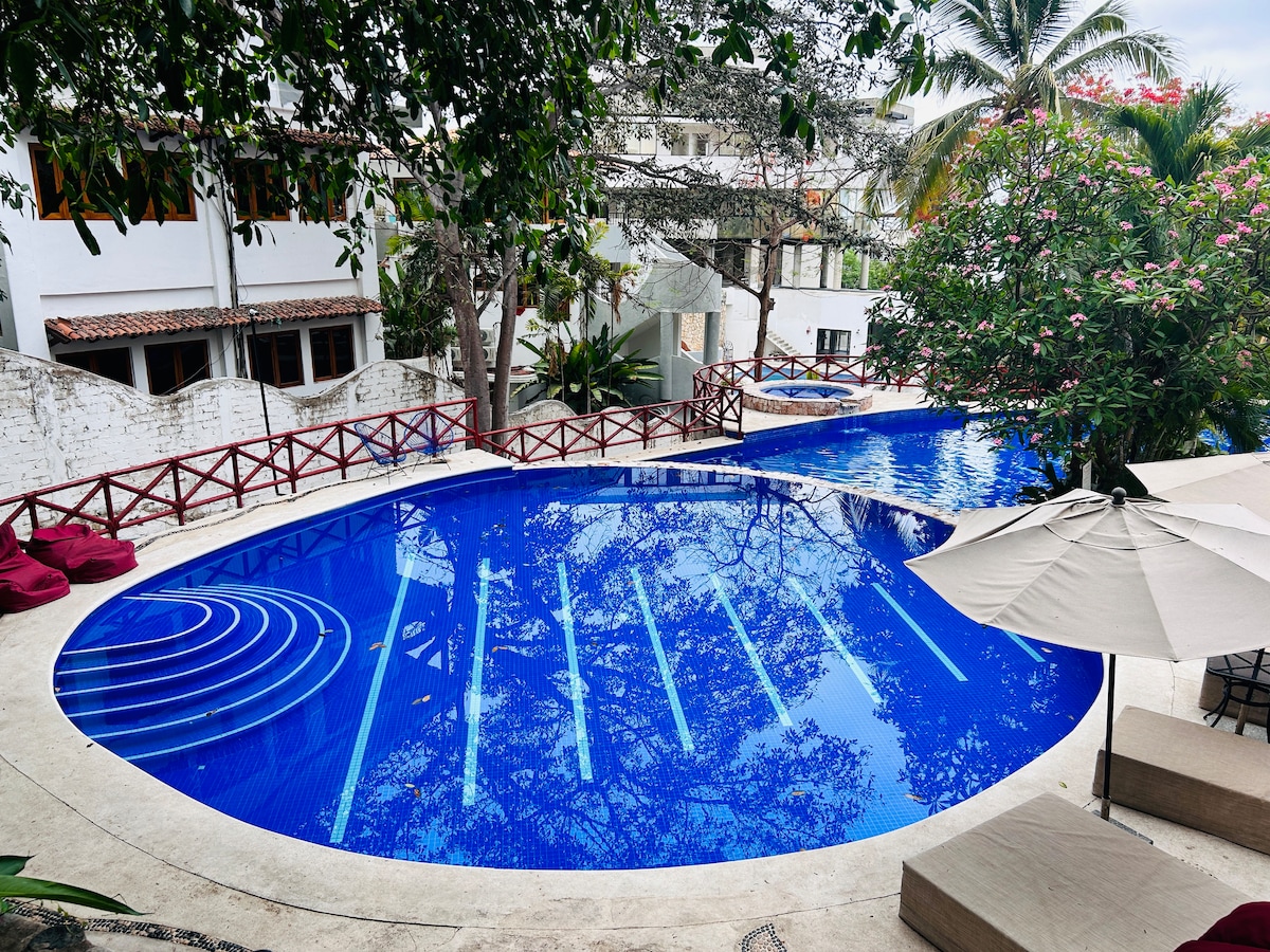🌴 Պատկերացրեք, որ արթնանում եք ծովից ընդամենը մի քանի թաղամաս հեռավորության վրա ՝ Պուերտո Վալյարտայի աշխույժ սրտում, որը շրջապատված է նրբաճաշակ համերով, փողոցային արվեստով, հոգով բարերով և գիշերներով, որոնք երբեք չեն մոռացվում: 🙆🏽♂️ Այս հարմարավետ բնակարանը ձեզ առաջարկում է կատարյալ հավասարակշռություն հանգստի և արկածների միջև: 🛏️ Վայելեք առանձին ննջասենյակ, ժամանակակից լոգասենյակ և հյուրասենյակում հարմարավետ ծալվող մահճակալ ։ 🕶️ Տանիք ՝ լողավազանով, ջակուզիով, խմիչքի բարով, մահճակալներով, խորովածով, կրակով խոզանակներով, խաղերով, ընթերցասրահներով և համագործակցությամբ ։