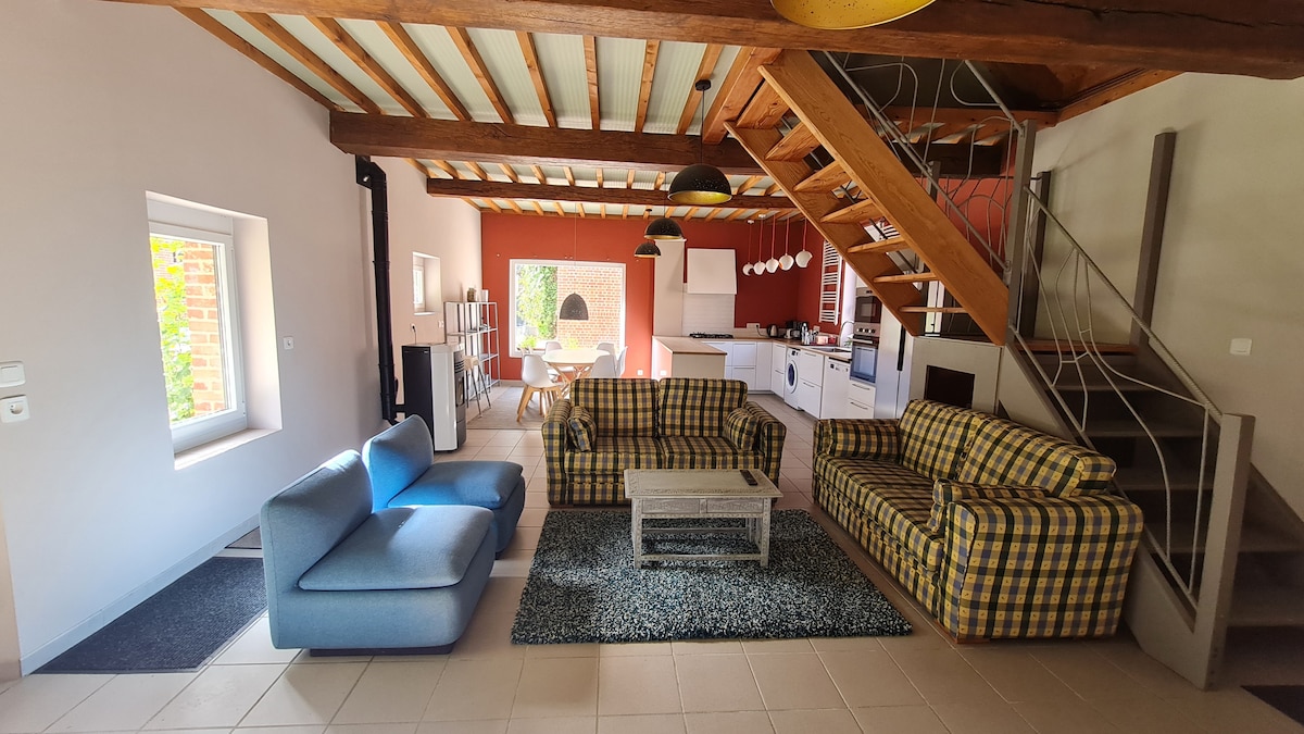 Հարմարավետ լոֆթ գյուղական վայրում, որը կցված է մեր տանը ։ գեղեցիկ բուխարի ՝ երկկողմանի ներդիրով (տրամադրվում է փայտ) նախաճաշը հնարավոր է շաբաթվա վերջում տնական մթերքներով ՝ ջեմ, տորթ, ձու և տնական մեղր ... Քնում է 3 1 երկտեղանոց մահճակալ 160X200 հյուրասենյակում 1 լրացուցիչ մահճակալի հնարավորություն (ըստ պահանջի) լիովին կահավորված լոֆթ իտալական ցնցուղ Հյուրասենյակ ՝ ներդիրով գտնվում է 18 կմ հեռավորության վրա Amiens, 10 կմ հեռավորության վրա Villers bretonneux եւ Ալբերտ Baie de Somme և Asterix Park - ը 1 ժամում