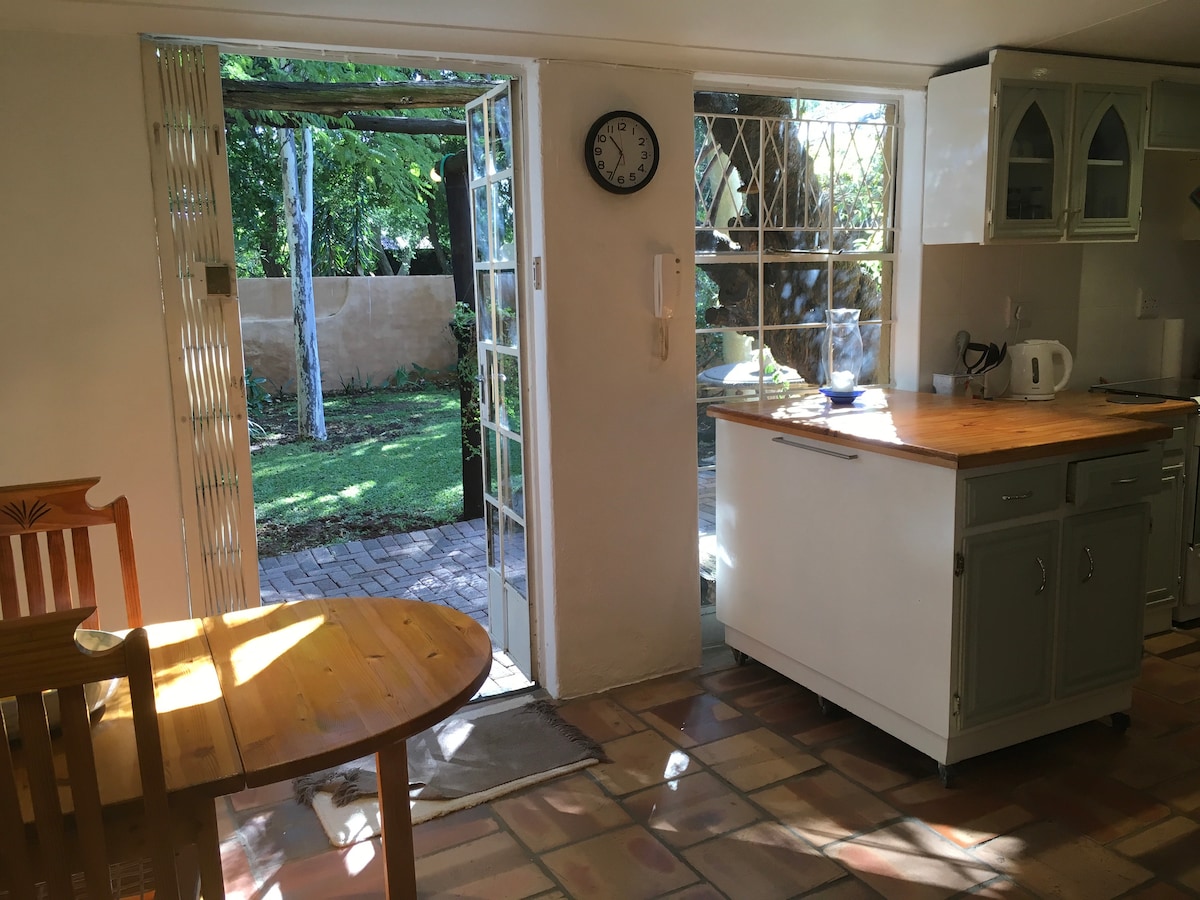 Այս գյուղական քոթեջը կատարյալ է փոքր ընտանիքների համար, որոնք ունեն փոքր (բարեհամբույր, պատրաստված) տնային կենդանիներ, զույգեր, միայնակ ճանապարհորդներ և գործարար մարդիկ: Չնայած նրան, որ գտնվում են բոլոր հարմարությունների մոտ, ծառերի հովանոցը և ագարակային միջավայրը կստիպեն ձեզ զգալ, որ մղոններով հեռու եք իրարանցումից ։ Քոթեջն ամբողջովին առանձին է և հագեցած. ընդամենը պետք է բերել պայուսակ: Առկա է ավտոկայանատեղի, անվտանգություն և լողավազան ։ Քոթեջը սպասարկվում է շաբաթական կամ օրական R120 - ի հարմարության համար
