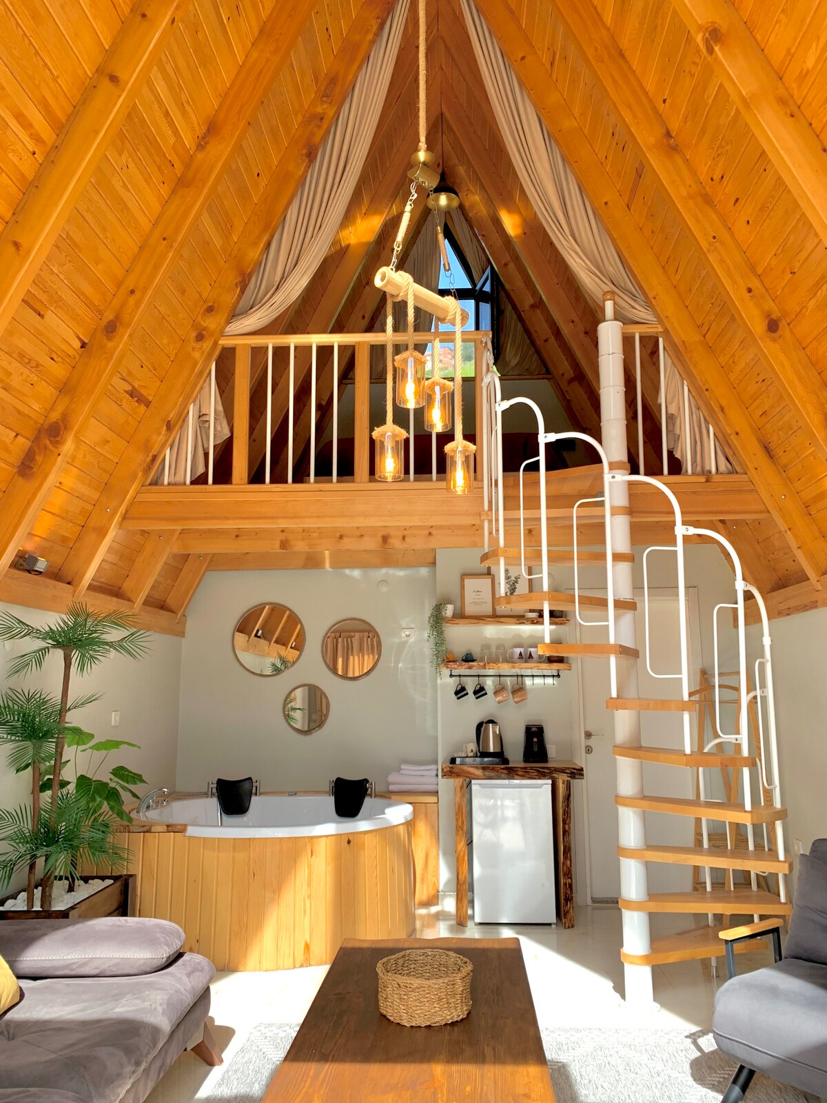 Սիրված եռանկյունաձև տան կոնցեպցիան մեր հարմարություններից մեկն է: Մեր բունգալոն չափազանց իդեալական տարբերակ է նրանց համար, ովքեր ցանկանում են հարմարավետ և խաղաղ հանգիստ անցկացնել ։ Բնության գրկում գտնվող մեր բունգալոն հիանալի տարբերակ է հանգիստ և հանգիստ հանգստի համար ։ Մեր բունգալոն, որտեղից բացվում է տեսարան դեպի գետը, ծովը, անտառը և ափամերձ քաղաքը, ձեր այցի ընթացքում գեղեցիկ հանգիստ է խոստանում իր սիրված հարմարություններով: