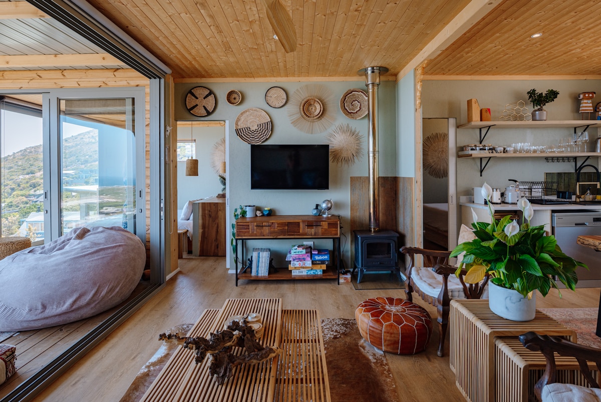 Ծովափնյա լեռնային հանգիստ բացառիկ միստիկ ժայռերի արգելավայրում ՝ անծայրածիր տեսարաններով, լողավազանով և մեծ ֆիբոս պարտեզով ՝ դեպի լողափ տանող մասնավոր ճանապարհով ։ Այս ճարտարապետի նախագծած փայտե բունգալոն կատարյալ է Քեյփթաունն ու Հարավային թերակղզին ուսումնասիրելու կամ պարզապես արգելելու և հանգստանալու համար ՝ պահպանական գյուղի վճիտ ընկղմման մեջ ։ 2 մեծ en - Suite ննջասենյակ, ինչպես նաև հարմարավետ լոֆթ և լրացուցիչ երկհարկանի մահճակալներ երեխաների համար: Տունը գտնվում է Քեյփթաունի կենտրոնից ընդամենը 45 րոպե հեռավորության վրա ։