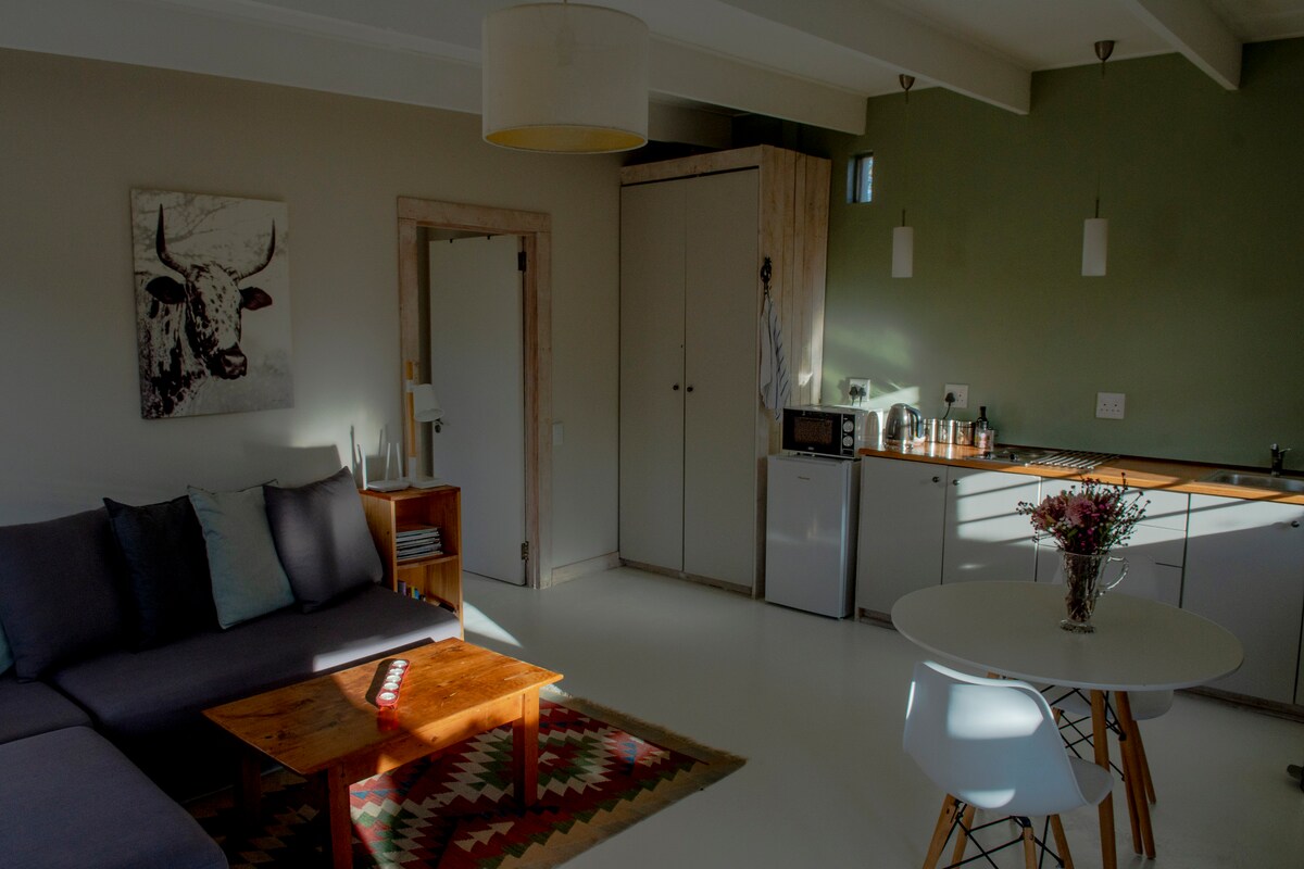 Step into this cozy cottage, where the warm tones of reds and comfortable decor create an inviting atmosphere that feels like a gentle hug. Every detail has been carefully considered to make you feel right at home. Nestled in the picturesque suburbs of Swellendam, our friendly resident animals - donkeys, sheep, and chickens - will warmly greet you on arrival.