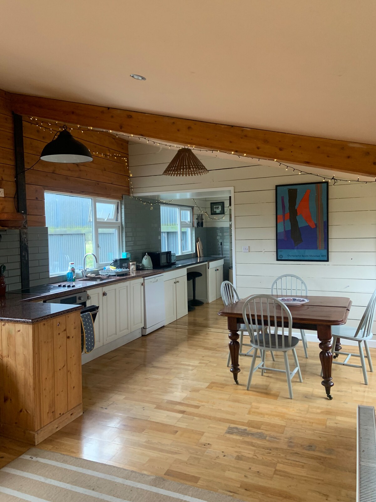 Warm &homely Log Cabin nestled on the family farm, entry is via the farmyard 🐮 Rural surroundings, close to town & within an hr of Dublin City centre Large living room with corner sofa, &an optional second sitting room with sofa bed This is a lived in home 360views of hedges & open farmland Lots of books & board games, Record Player, Projector &Google Home Speaker Please note we intentionally do not have a TV. No microwave or kettle either: stove top kettle just makes for a heartier cup