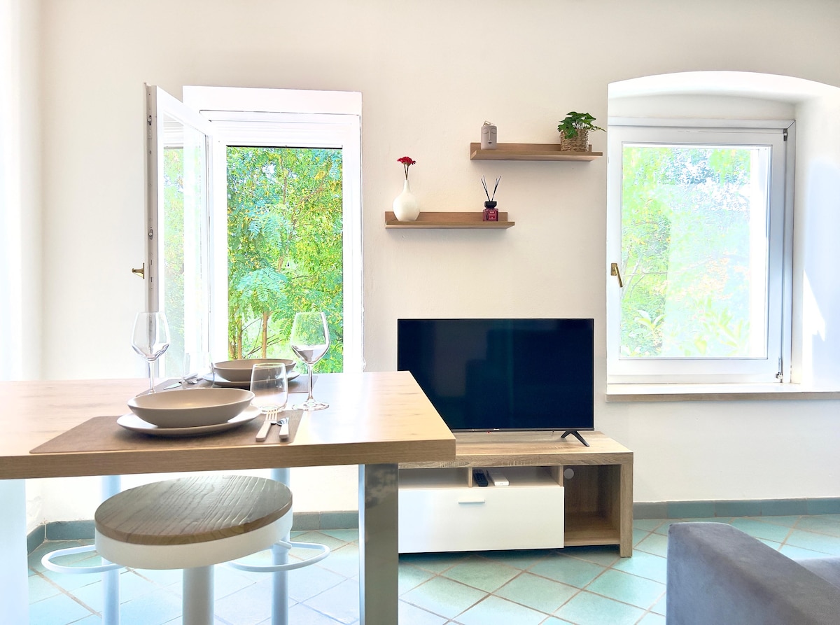 Երկու հարկում երկու սենյակ, վերջերս վերանորոգված, ճաշակով կահույքով. հյուրասենյակ ՝ բազմոց - մահճակալով (1 ու կես տեղ), ճաշասեղան, հեռուստացույց, WiFi: Խոհանոցիկ ՝ ջեռոցով , սառնարանով և ամանալվաց մեքենայով ։ Լոգասենյակ ցնցուղով, զուգարանով, բիդեով: Վերևի ձեղնահարկի վարպետի ննջասենյակ, բաց: Դուրս եկեք լավ կահավորված ճակատային բակից ։ Ջեռուցում (15/10 - ից 15/04 ), մոծակների ցանցեր: Թույլատրվում են փոքր, միջին չափի տնային կենդանիներ ։ Լողավազան ( բաց է 06/01 - ից մինչև 09/30) ընդհանուր է Սոլենգոյի բնակարանի հետ