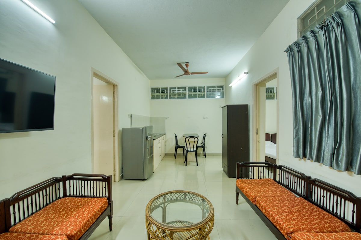 1 small bedroom simple and clean flats in the heart of Pondicherry .Each apartment has a kitchen with basic utensils,fridge and induction stove, air conditioned rooms, Bathrooms have shower and running hot water, TV and free wifi. Beach, good restaurants and coffee shops, shopping areas and tourists spots of Pondicherry are all at a walk-able distance. Best suited for families. Peaceful and quite place to return to after a long day of sightseeing and shopping.