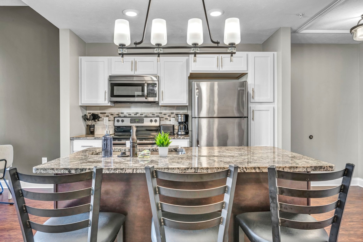 You can stop your search now. You just found the perfect place to book for your trip to Cleveland. ➹ Clean. Robust Amenities. Modern Finishes. Quick Host Responses. ➹ You're going to be located at the CENTER of everything in Downtown Cleveland. ➹ Get a good night's sleep with our memory foam beds. ➹ Spend your daytime working from home at our private home office. Cook a meal for your group in our beautiful, timeless kitchen. Then spend your evenings relaxing with our 55" Smart TV.