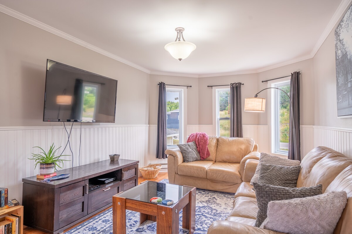Բարի գալուստ The Suite on Main! Օվկիանոսի տեսարանով այս լուսավոր և հարմարավետ երկու ննջասենյակով առանձնատունը կատարյալ վայր է հանգստանալու և ուժերը վերականգնելու համար ՝ վայելելով ձեր ուղևորությունը դեպի գեղեցիկ Գրոս Մորն ազգային պարկ ։ Ժամանակակից այս ստորին հարկաբաժնում կա հարմարավետ հյուրասենյակ, ամբողջական խոհանոց, երկու ննջասենյակ, գրասենյակային տարածք և մեծ լոգասենյակ ՝ լվացքի մեքենայով և չորանոցով ։ Դրսում դուք կունենաք ձեր առանձին տախտակամածը ՝ բարբեքյուով և նստատեղով, որտեղ կարող եք վայելել օվկիանոսի տեսարանները, երբ դիտում եք, թե ինչպես է արևը մայր մտնում նավահանգստի վրայով: