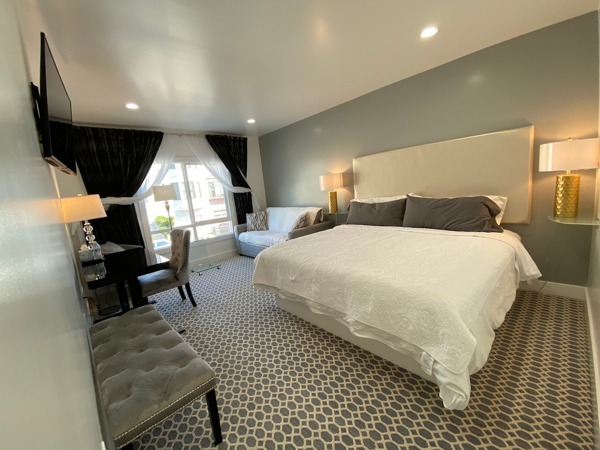 Հարմարավետություն և հարմարավետություն զգացեք Սան Ֆրանցիսկոյի այս նորաոճ հյուրանոցային սենյակում, որն ունի մեծ մահճակալ, Սմարթ հեռուստացույց և հատուկ աշխատանքային տարածք ։ Քանդեք մտածված շտրիխները, ինչպիսիք են ընդարձակ զգեստապահարանը, ամբողջական հայելին և ժամանակակից լոգասենյակը ՝ հագեցած պլյուշ, բարձրորակ սրբիչներով ։ Վճարովի կայանատեղին հասանելի է ըստ պահանջի ։ Կատարյալ կերպով տեղակայված լինելով հմայիչ զբոսայգիների, խանութների և տեղական ճաշասենյակների մոտակայքում ՝ այս գրավիչ տարածքը իդեալական է և ՛ աշխատանքի, և ՛ հանգստի համար քաղաքում մնալու ընթացքում: