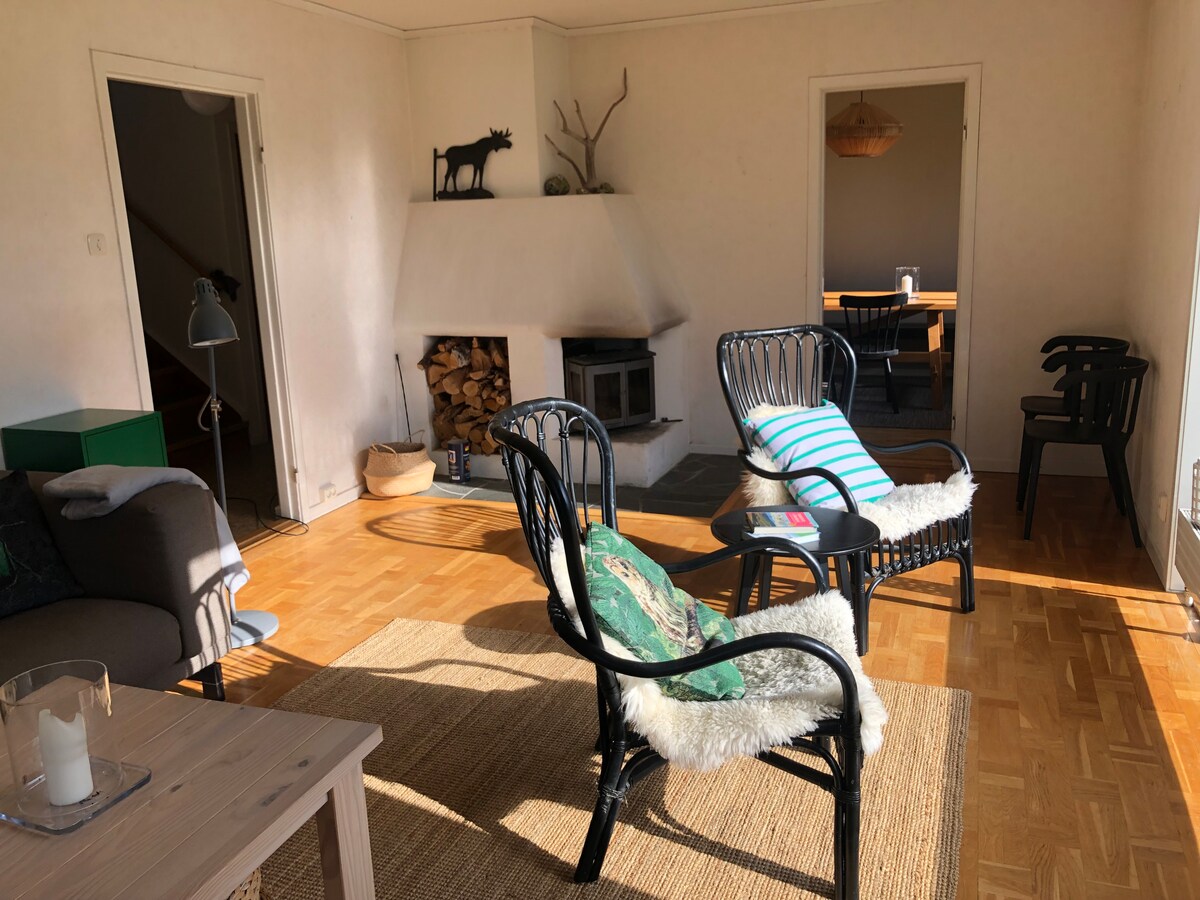 Entire house with undisturbed location by the lake, wood-burning sauna cabin and own jetty for morning coffee, swimming and fishing. Large plot with trampoline, space for play and socializing. Fireplace. In the immediate area there are the larger alpine destinations. Grocery store within walking distance. Summertime offers mountain hiking, waterfalls, golf in Klövsjö and many other excursion destinations. Outdoor pools at the campsite. In winter, the ice offers pimpling and cross-country trails.