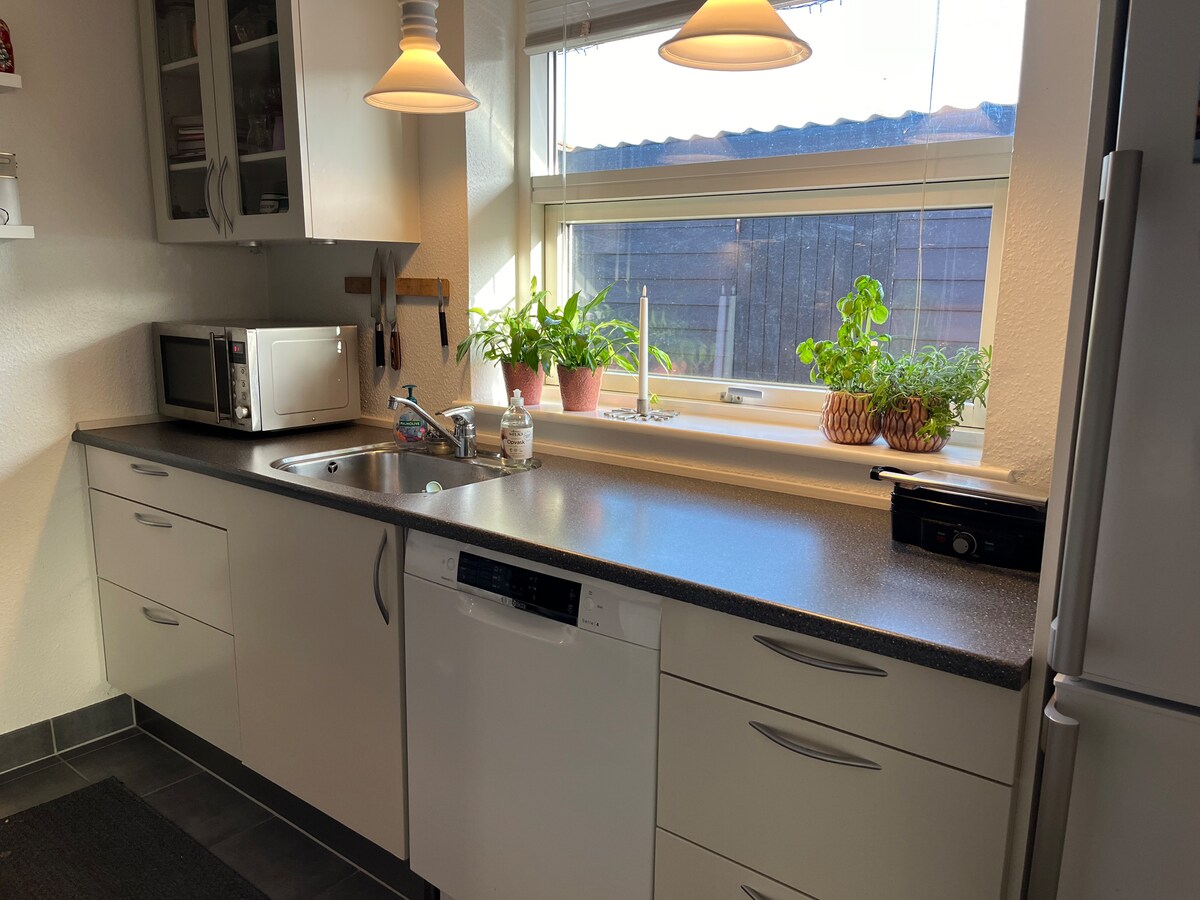 Ամբողջ ընտանիքով հանգստացեք գեղեցիկ բնությանը մոտ գտնվող ընդարձակ և լուսավոր բնակարանում ՝ Ռոլդ Սկովը, Ռեբիլդ Բակերը, գոլֆի դաշտը և Լիլ Վիլդմոզեն: Եվ ընդամենը 20 րոպե մինչև Ալբորգ ։ Այն ունի երկու մեծ ննջասենյակ ՝ երկտեղանի մահճակալներով և մեկ ննջասենյակով պալատ ։ Բնակարանը 120 քմ է և ունի գեղեցիկ խոհանոց ՝ սառնարանով և սառցարանով, նոր լոգասենյակով և ընդարձակ ճաշասենյակով ։ Հնարավոր է օգտագործել լվացքի մեքենան ։ Ամեն ինչ լավ վիճակում է, և սպիտակեղենն ու մաքրումը ներառված են գնի մեջ ։
