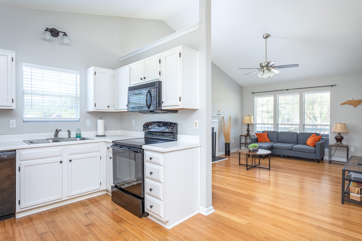 Բարի գալուստ իմ հարմարավետ և չափազանց քայլող Ուեյք Ֆորեսթ, NC Townhome ։ Ամբողջ 1500 քառակուսի ֆուտ մակերեսով դուք կունենաք բավականաչափ տարածք (երբ դուրս չգաք Վեյք Ֆորեսթից և Եռանկյունուց): Ուզո ՞ ւմ եք աշխատել տնից Իմ թաունհաուսի ինտերնետն արագ է և կայուն, իսկ գրասենյակը կամ մարզասրահը հիանալի բնական լույս է ստանում: Այն զիջում է անզուգական համագործակցային տարածքից ։ Ուզո ՞ ւմ եք ՉԱՇԽԱՏԵԼ ։ Վայելեք հարմարավետ հյուրասենյակը և շքամուտքը, որը կատարյալ է հանգստի համար ։