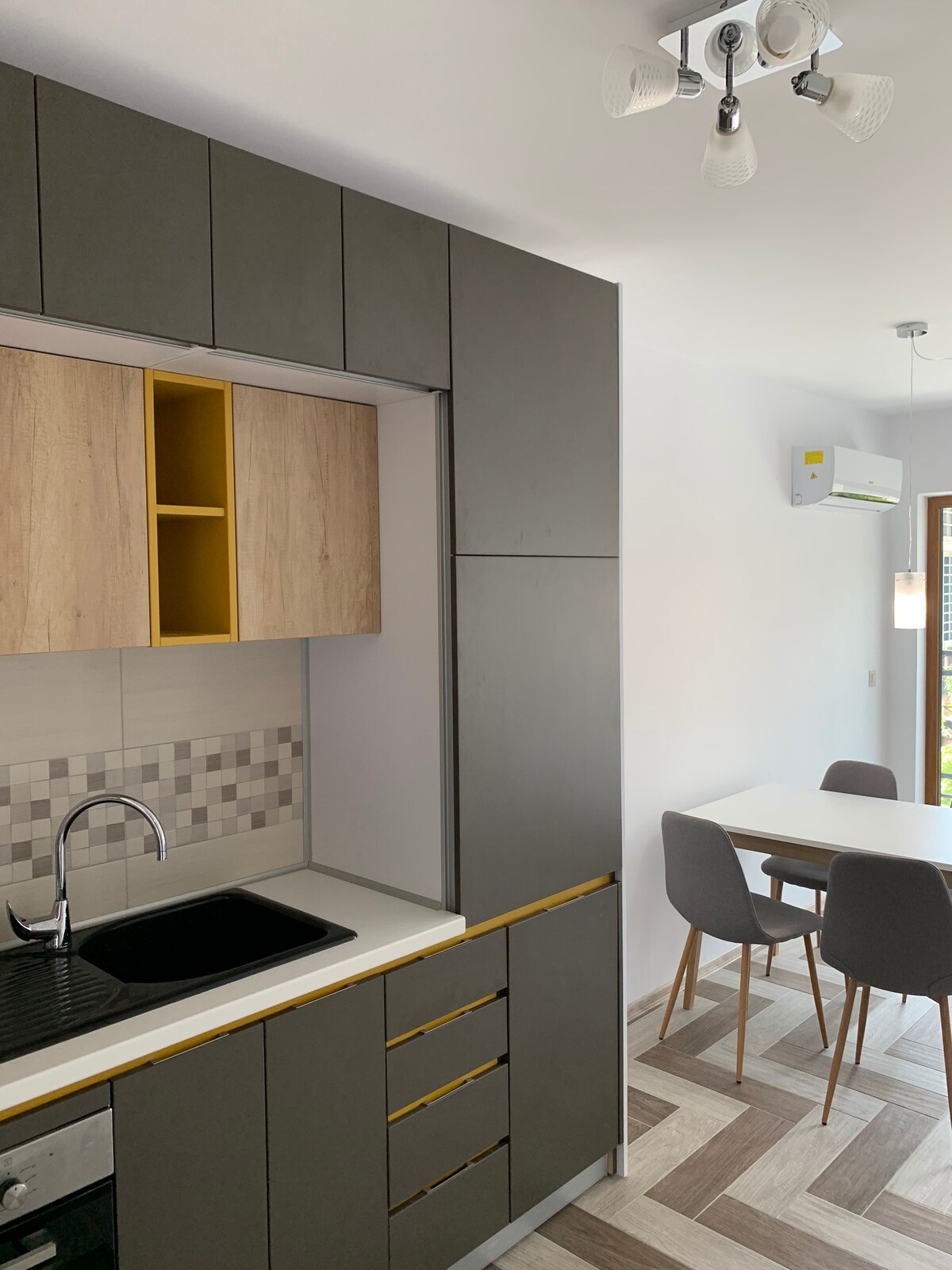 Charming and Stylish New-Built Studio in an Old Building – Varna Center. Step into sophistication with this sleek, newly built studio, perfectly nestled (3rd last floor) within an elegant old building in the heart of Varna. This prime location offers the ultimate urban experience—steps away from the picturesque Sea Garden, rich historical sites, sandy beaches, museums, the Roman Baths, the vibrant port, and an array of trendy bars and restaurants.