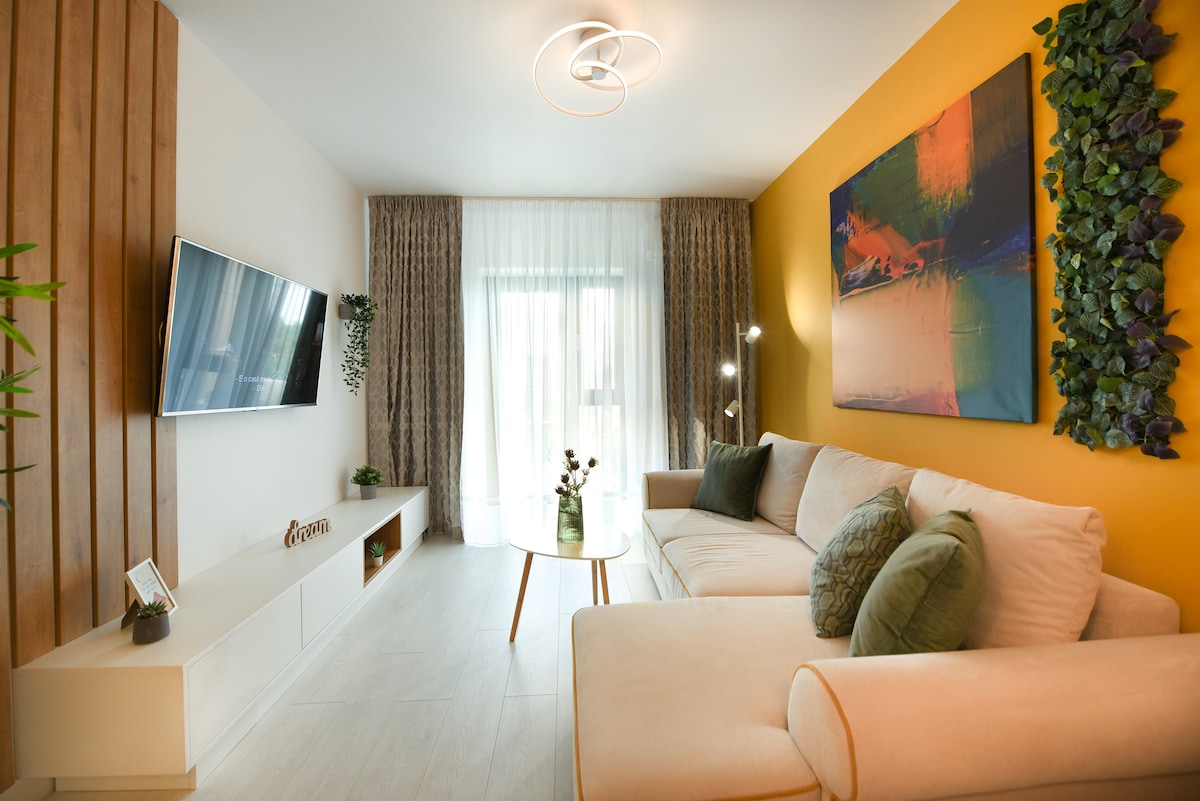 A special design for an unforgettable stay in Bucharest! Cozy and bright, this home features a fusion of materials and details that give it a vibrant character. With a great mix of a modern style, described by splashes of colors and earth tones, this home will offer you a unique experience. The apartment has a little balcony, just perfect to enjoy sunny mornings, with an open view over the north part of the city. The home is equipped with all appliances you might need for a comfortable stay.