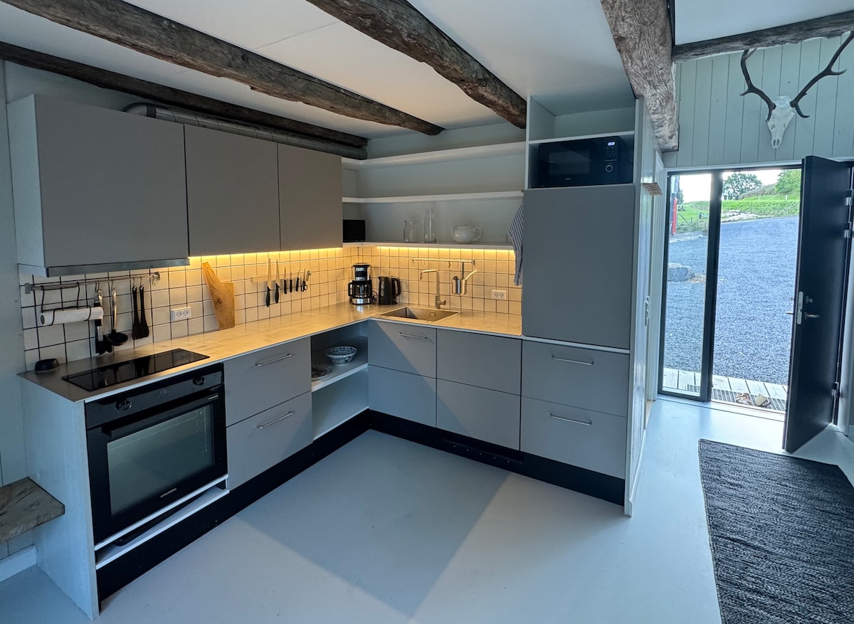 32 մ2 մակերեսով փոքր հարմարավետ հյուրատուն, որը գտնվում է գեղեցիկ 4 մետր երկարությամբ կիսախարխուլ սեփականությանը ՝ շրջապատված անտառով, դաշտերով և Բորնհոլմի բնության լայն տեսարաններով ։ Հյուրատունը կապիտալ վերանորոգված է և ներառում է հյուրասենյակ ՝ բազմոց - մահճակալով, երկհարկանի մահճակալով, աստիճաններով խոհանոցիկ և լոգասենյակ ՝ ցնցուղով և զուգարանով ։ Հյուրասենյակից ելք կա դեպի կղմինդրե տեռաս ՝ պարտեզի կահույքով և գազի գրիլով ։