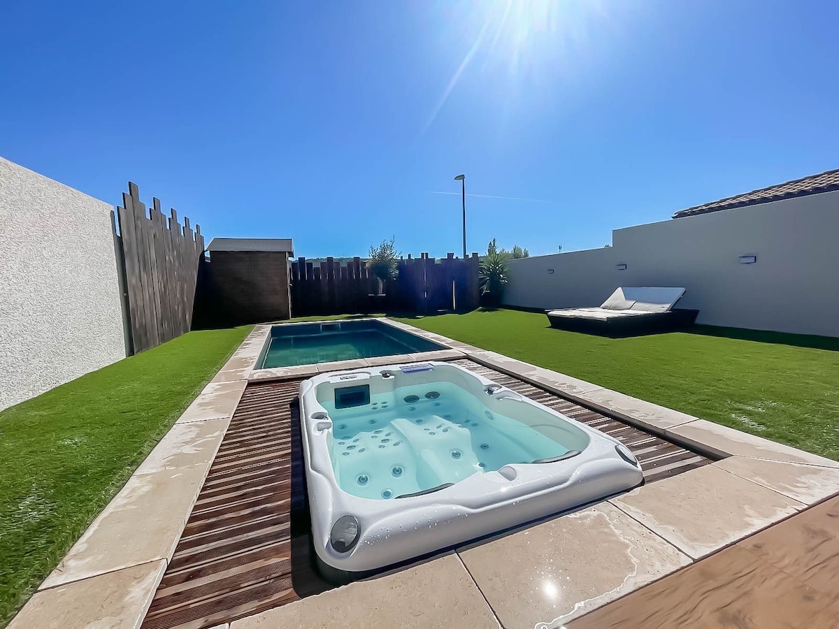 Au cœur de l’Ardèche méridionale, à proximité des gorges de l'Ardèche, la propriété est composée d'une maison de 90 m2, d'une suite de 32 m2 avec piscine (4.20m x 2.2 m) ainsi qu'un jacuzzi. idéalement situé sur un terrain de 700 m² proche de la rivière (3min a pied), à 5 min de tout commerces et restaurant cela vous permettra de passer d'agréables vacances au calme. La piscine est sécurisée sans vis à vis et comprends un deb et un salon de jardin sur un grand espace de 100 m².