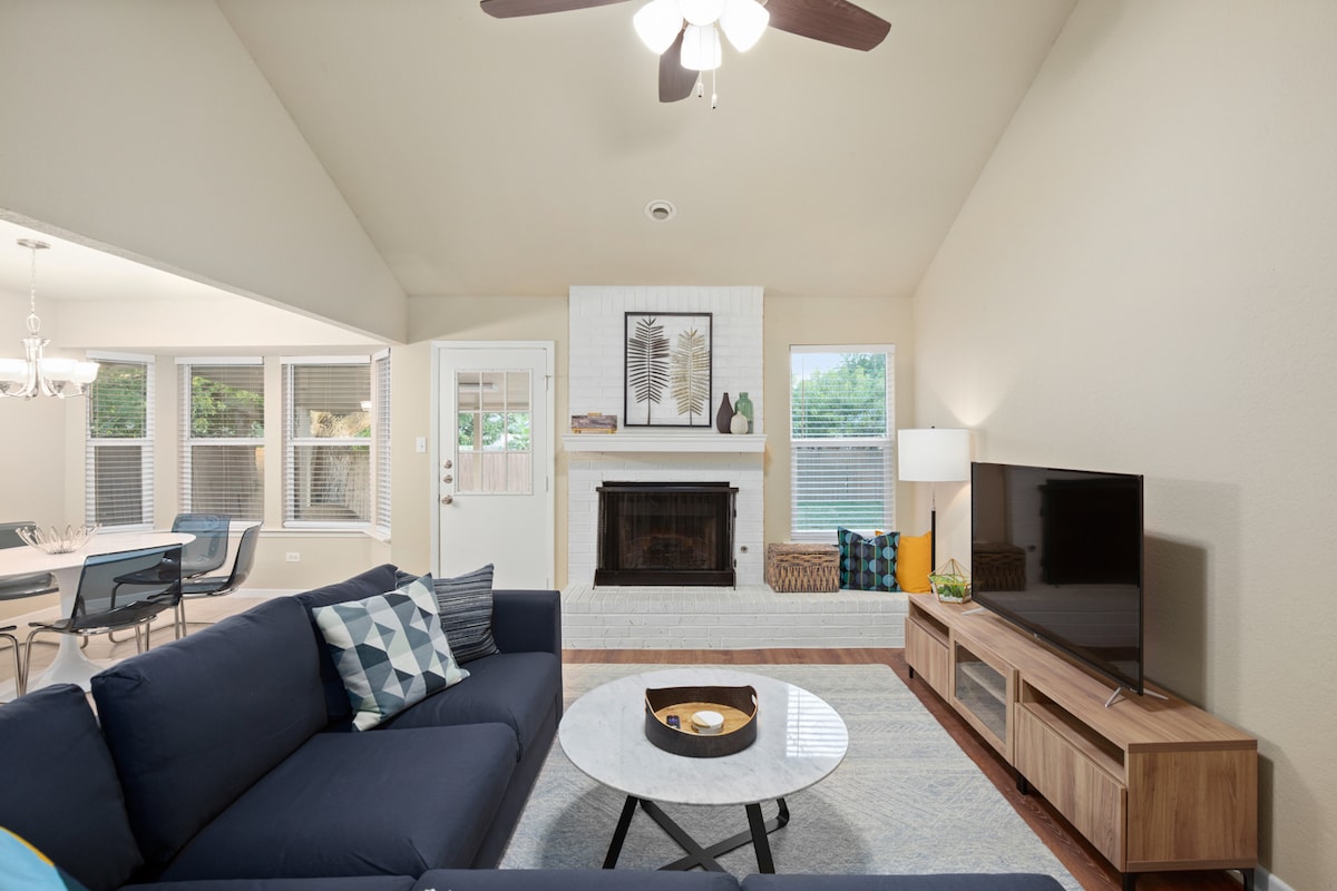 Բարի գալուստ ձեր կատարյալ ընտանեկան հանգիստ ։ Անվտանգ, հանգիստ թաղամասում գտնվող մեր շքեղ հարմարավետ վայրն առաջարկում է հարմարավետության և հարմարավետության իդեալական համադրություն ։ Մենք ոտքով հեռավորության վրա ենք մինչև Brushy Lake Park և Trail, և ընդամենը մի քանի քայլ հեռավորության վրա ենք բազմաթիվ բարերից և ռեստորաններից ։ Կենտրոնում ՝ դուք գտնվում եք Դոմենային առևտրի տարածքից ընդամենը 15 րոպե հեռավորության վրա, 18 րոպե մինչև Կալահարիի փակ ջրային պարկ և 30 րոպե մինչև Օսթինի կենտրոն ։ Սա կատարյալ վայր է Օսթինի ձեր արկածի համար ։