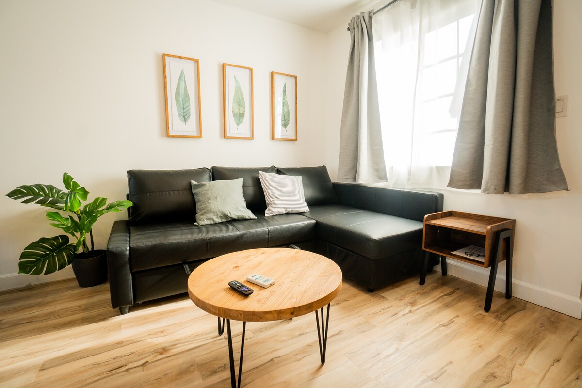Հարմարավետ տարածք, որտեղ կա այն ամենը, ինչ ձեզ հարկավոր կլինի հարմարավետ այցի համար ։ Ստուդիան ունի հիշողության փրփուր Queen չափի մահճակալ, ննջասենյակի ամբողջական բազմոց, ամբողջական խոհանոց, բարերի ոճի ճաշասեղան ՝ անհրաժեշտ բոլոր պարագաներով ։ Ժամանումը և մեկնումը քամին է ՝ օգտագործելով կոդավորված դռան կողպեք ։ Հիանալի տեղակայված է Լոս Անջելեսի և Օրինջ շրջանի միջև, Դիսնեյլենդից 12 մղոն և Լոս Անջելեսի կենտրոնից 20 մղոն հեռավորության վրա: