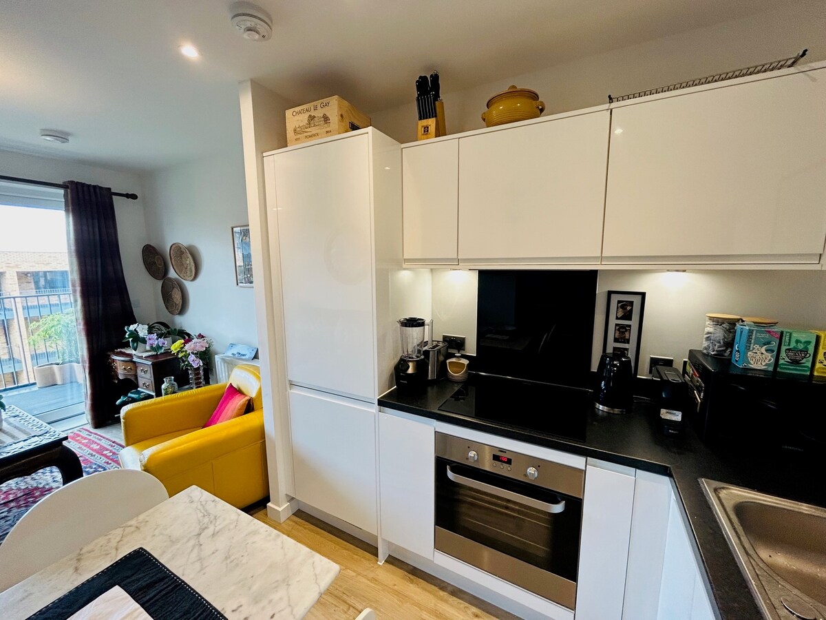 Ընդարձակ առաջին հարկի բնակարան ՝ հեշտ հասանելիությամբ ։ Բացեք խոհանոցը, լաունջը և ճաշասենյակը ։ Ննջասենյակը լուսավոր է երկտեղանի մահճակալով, հիշողության փրփուրով ներքնակով, շատ նկարներով և պահեստային տարածքով ։ Լոգասենյակում կա լոգասենյակ և ցնցուղ, սրբիչներ և հիգիենայի պարագաներ ։ Խոհանոցը կահավորված է բոլոր հարմարություններով, այդ թվում ՝ լվացքի մեքենայով կամ չորանոցով ։ Լաունջ ՝ բազմոցով, ճաշասեղանով, սմարթ հեռուստացույցով և Bluetooth բարձրախոսով, որպեսզի հանգստանաք և լսեք ձեր սիրած երաժշտությունը ։ Լոնդոնը գնացքով երթևեկում է մոտ 6 կանգառով ։ Ավտոբուսի կանգառը ՝ 1 րոպե ոտքով